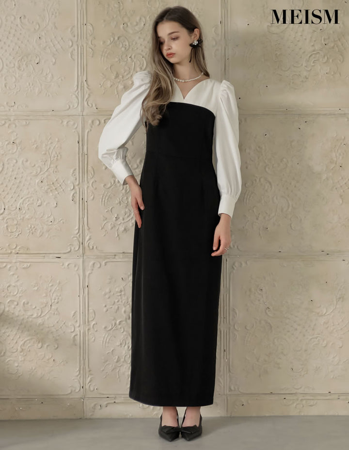 [MEISM by Re:EDIT][2025AW PRE ORDER][低身長サイズ有]ハートネックドッキングナローワンピース