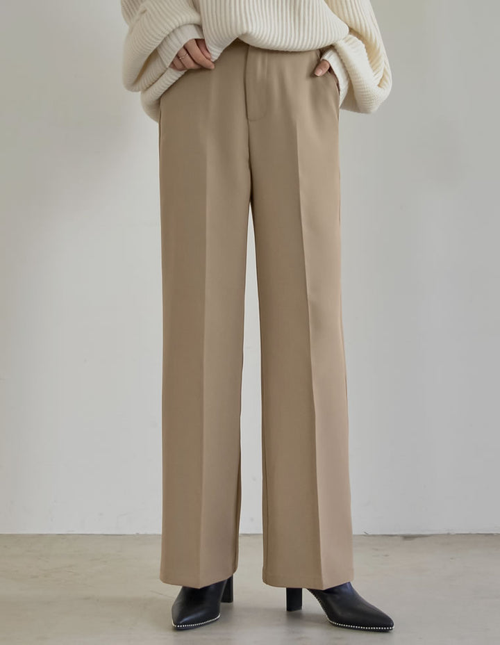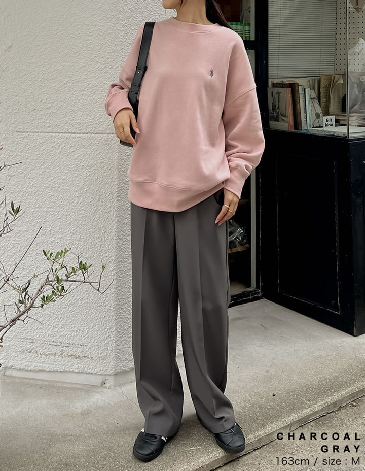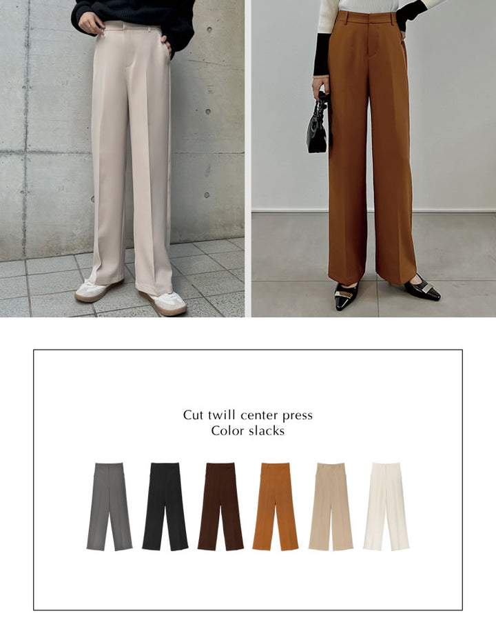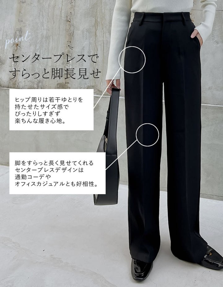 ・ベーシックながらも美脚見えするストレートシルエット&センタープレスデザイン