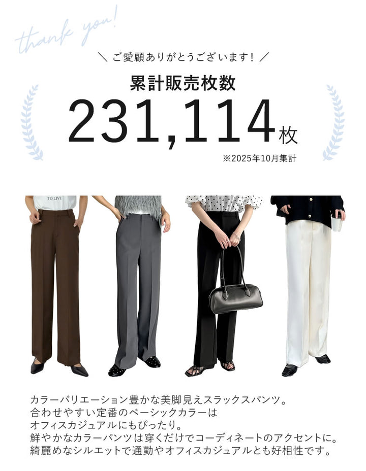 10サイズ展開!カラーバリエーション豊かな、美脚見えスラックスパンツ。