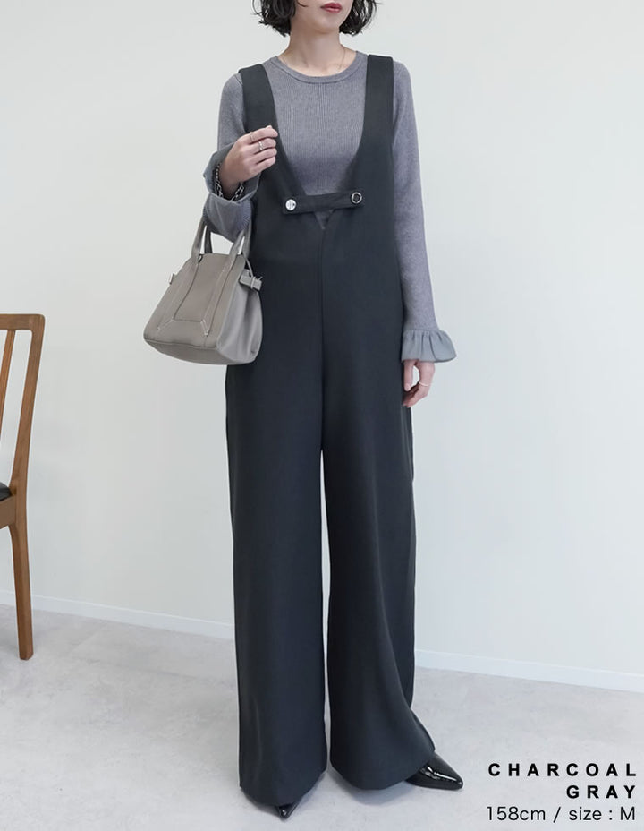 [低身長/高身長サイズ有][アルガンオイル加工]微起毛ツイルゴールドボタン付きサロペット