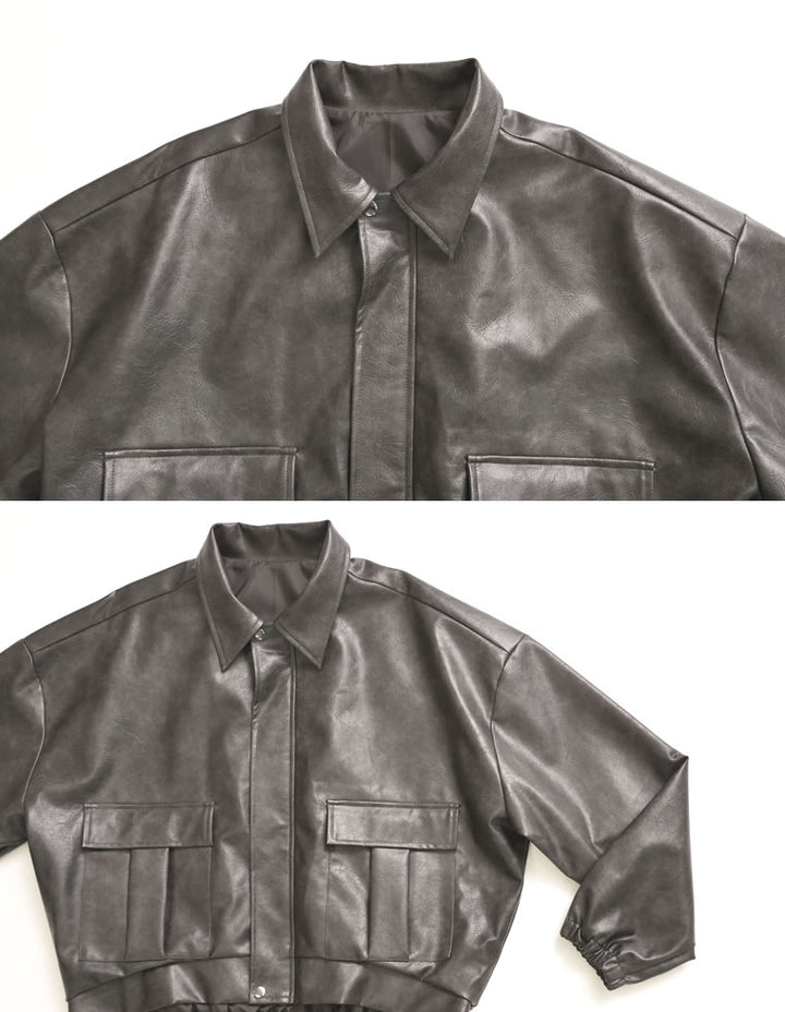 ヴィンテージライクなシボ感のある風合いにこだわった、ミドル丈のレザージャケット。柔らかいフェイクレザー素材を使用し、軽やかな着心地ながらリッチな見映えを叶えます。程よくコンパクトなミドル丈で、自然とスタイルアップ見え効果◎大きめのフラップポケットがアクセントとなり、シンプルコーデにモードな印象をプラス。Tシャツやニットにさらっと羽織るだけで、旬な大人カジュアルスタイルが決まります。季節の変わり目からラフに羽織れて、ロングシーズン重宝するレザージャケットです。