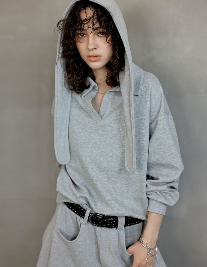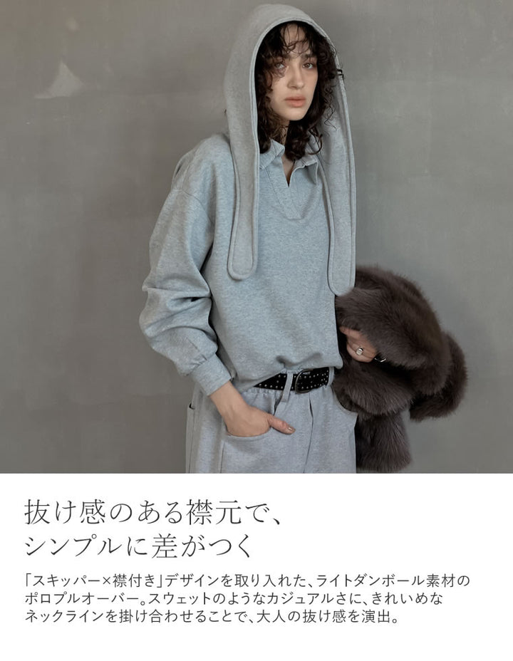 「スキッパー×襟付き」デザインを取り入れた、ライトダンボール素材のポロプルオーバー。