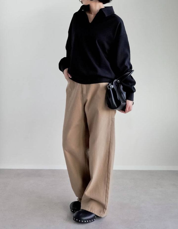 ゆったりとしたサイズ感ながらもルーズになりすぎず、こなれ感のある着こなしが叶います。