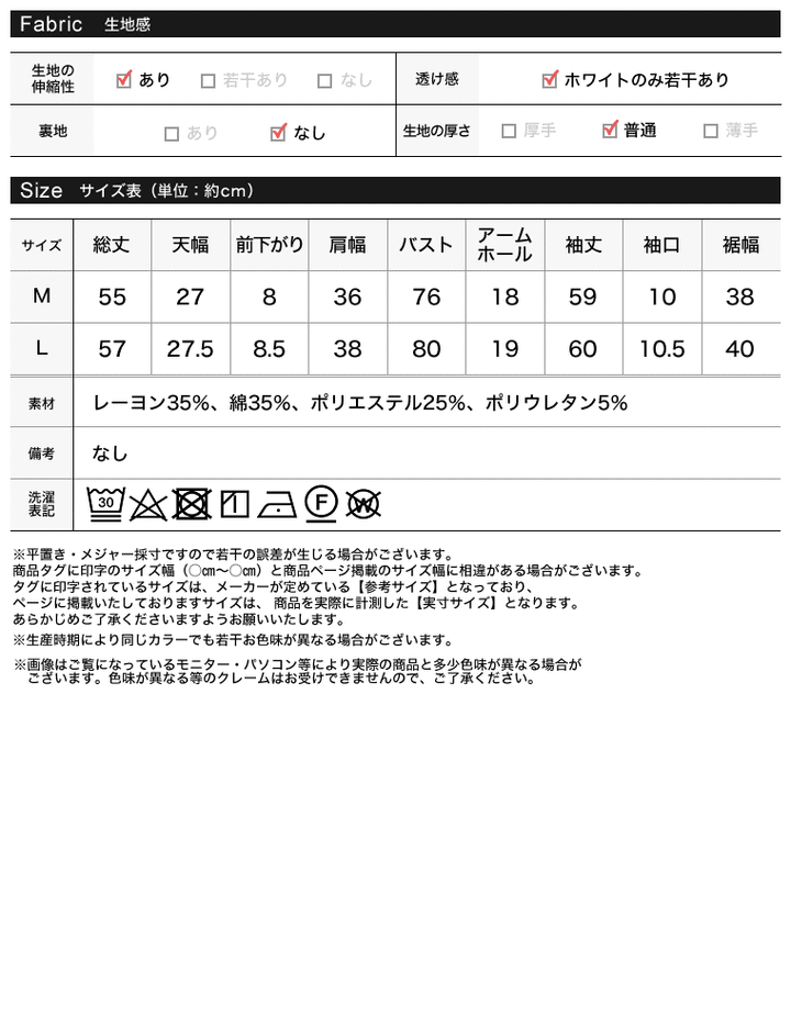洗濯・アイロンをする際は、商品タグの品質表示をご確認ください。