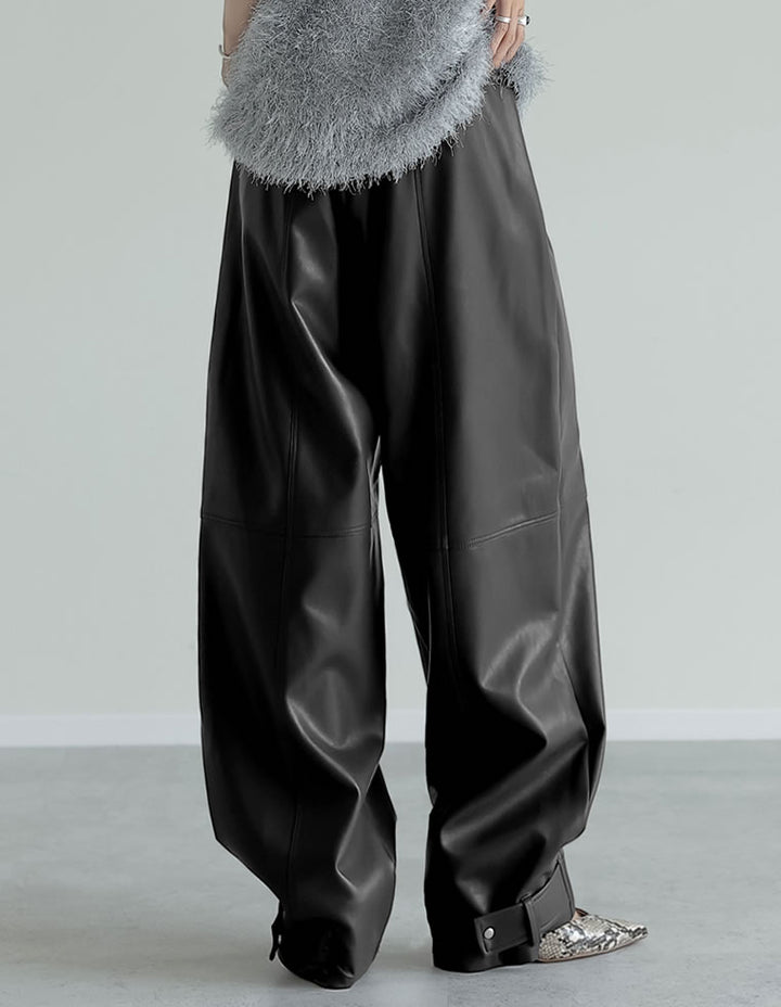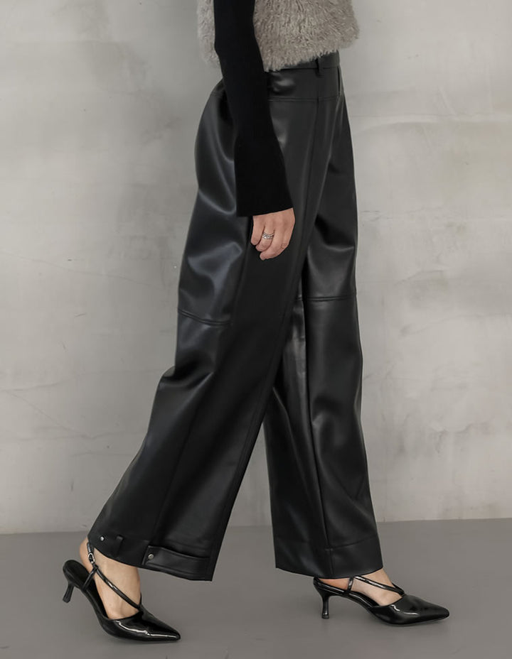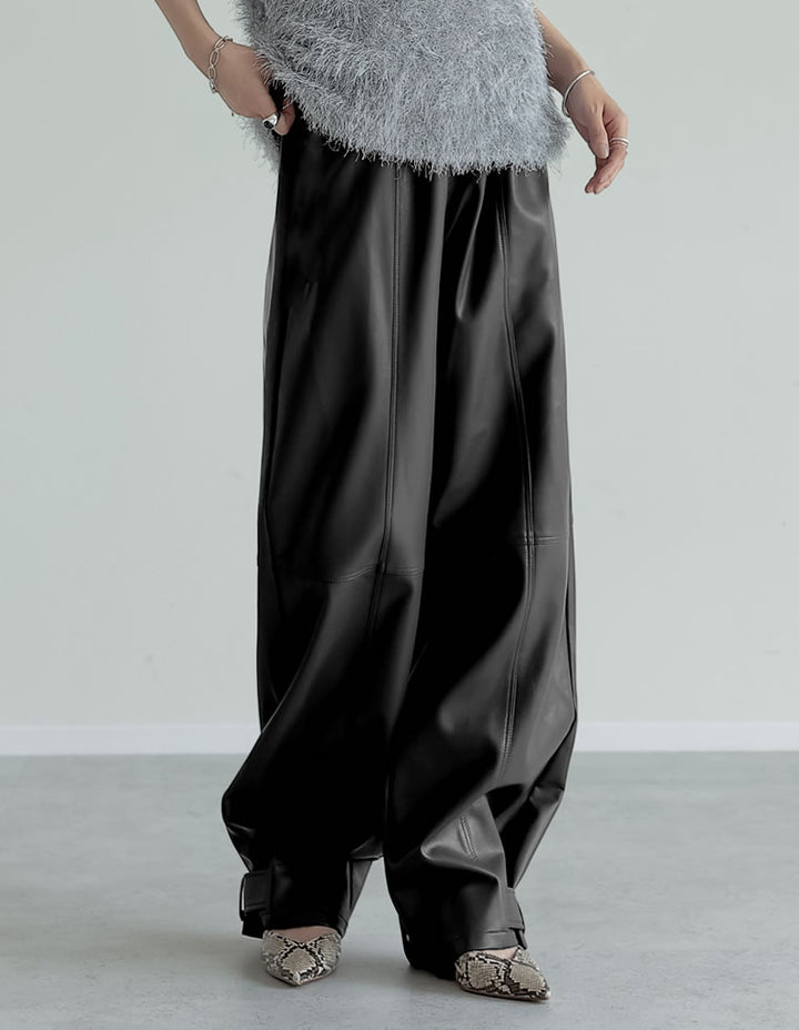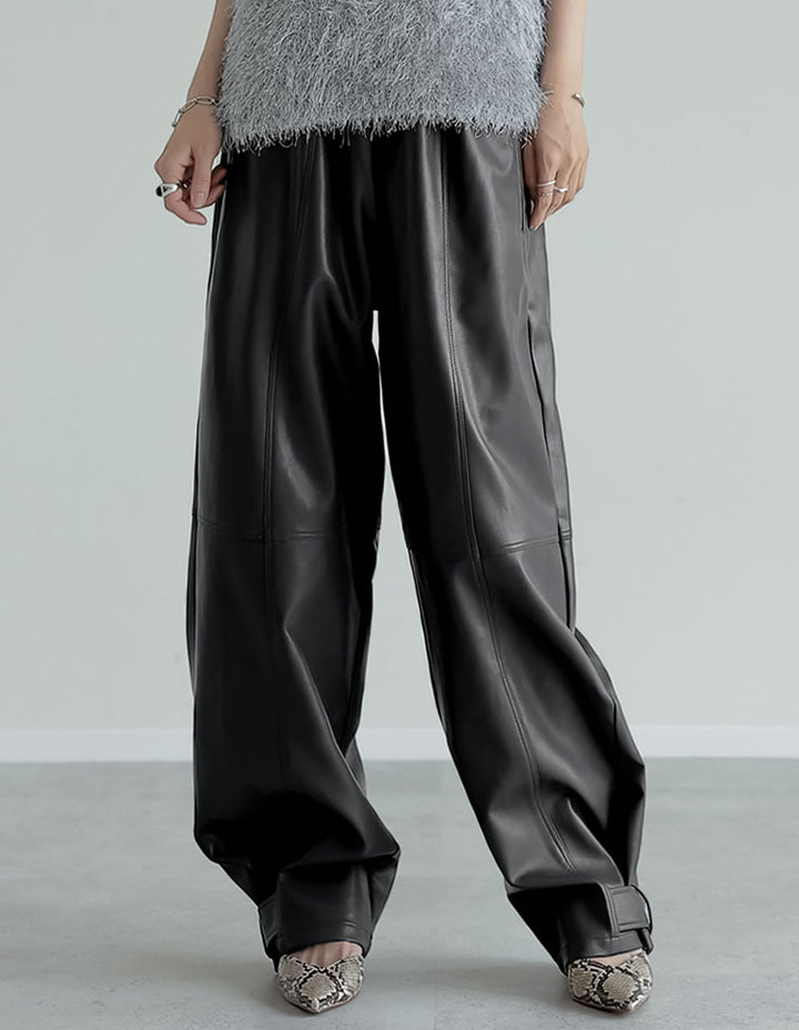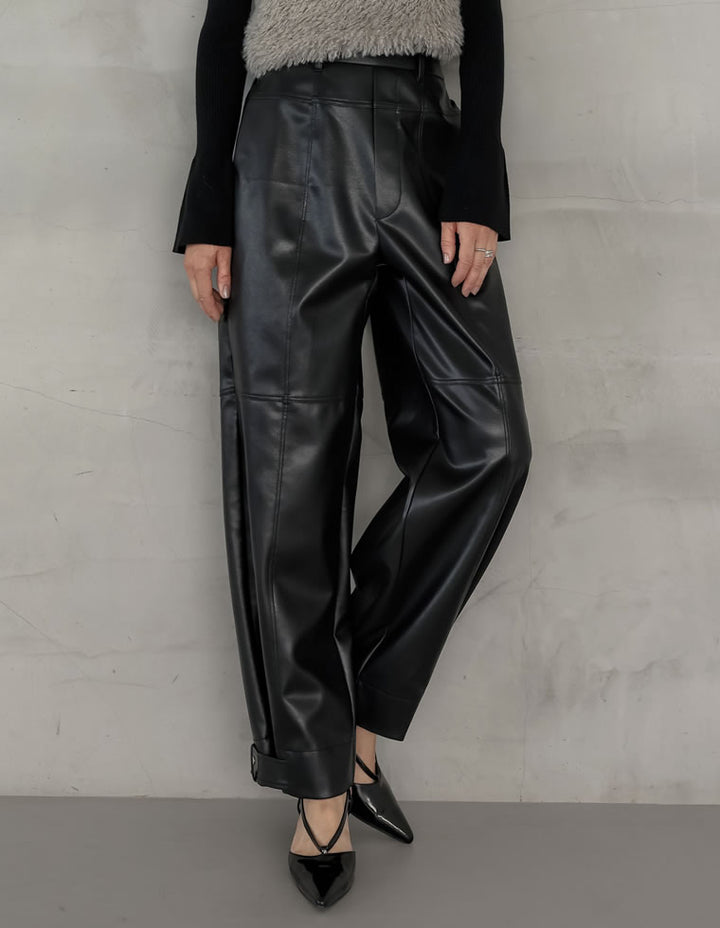 [2025AW COLLECTION][低身長/高身長サイズ有]フェイクレザーアンクルベルト2WAYパンツ