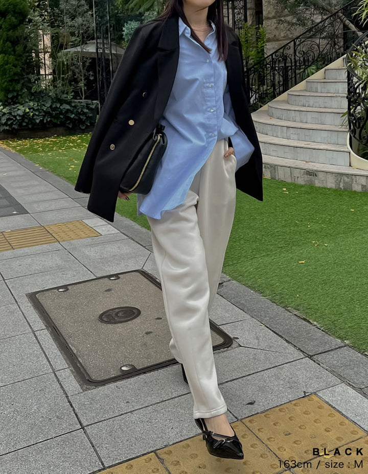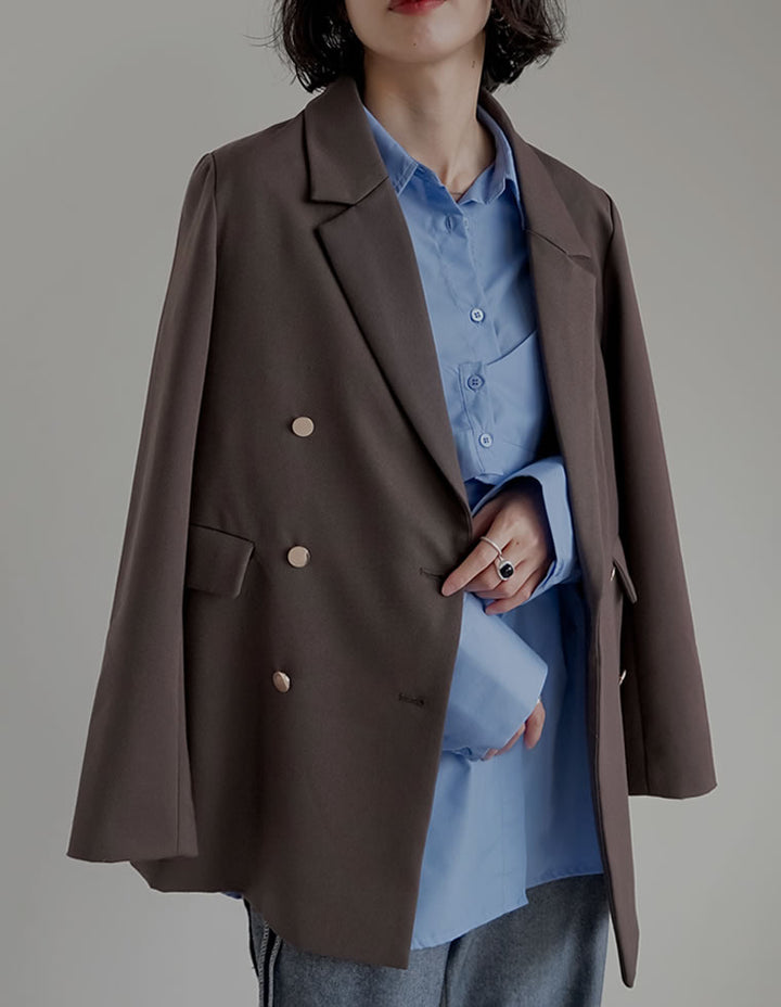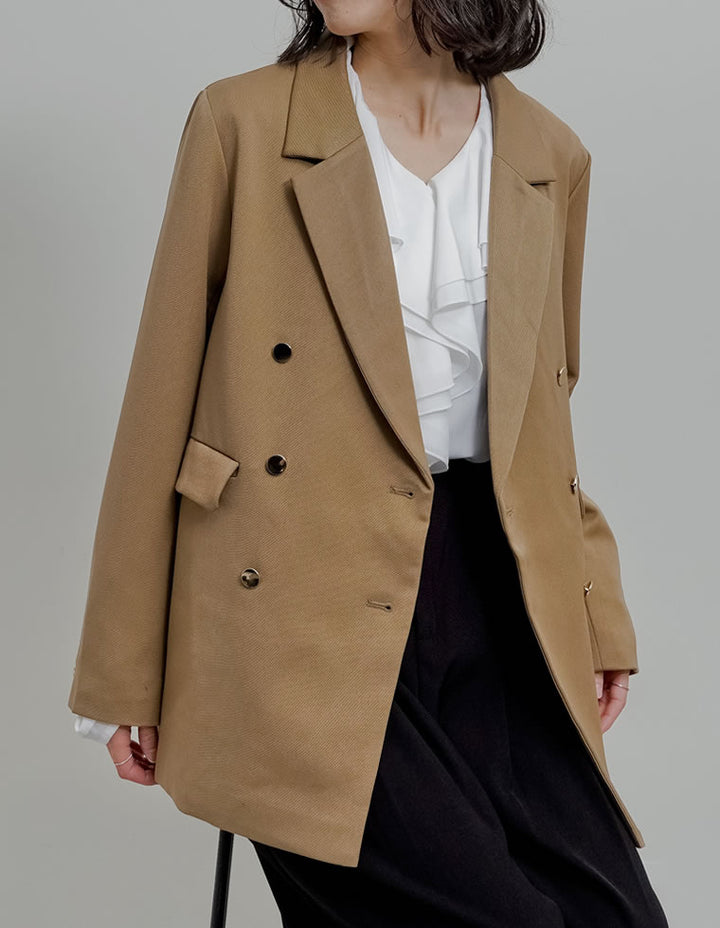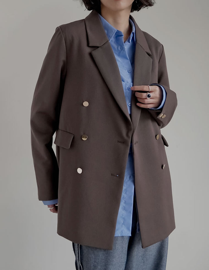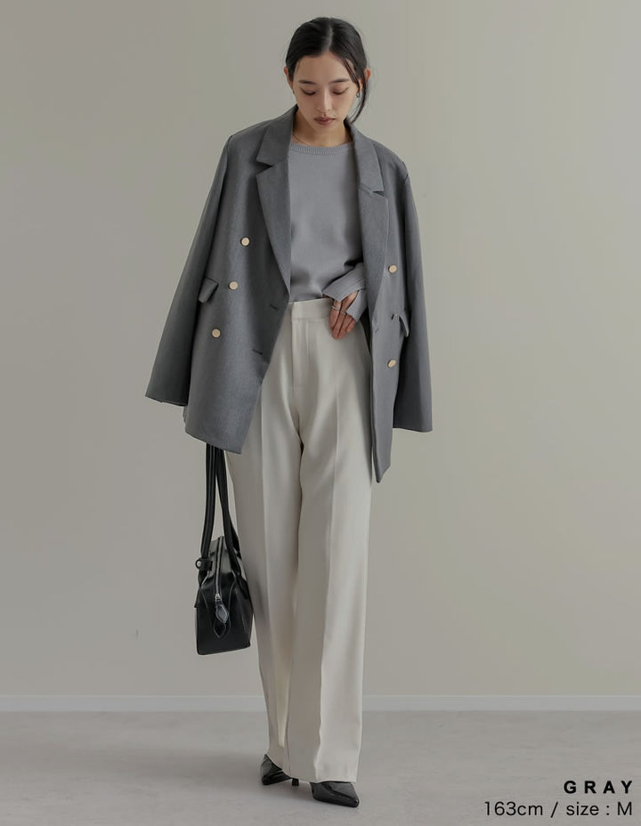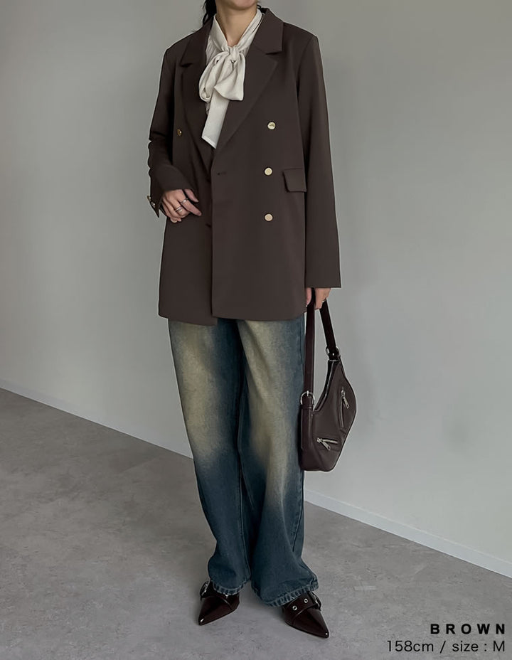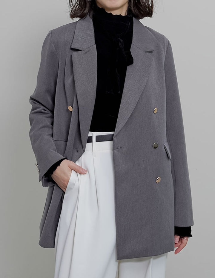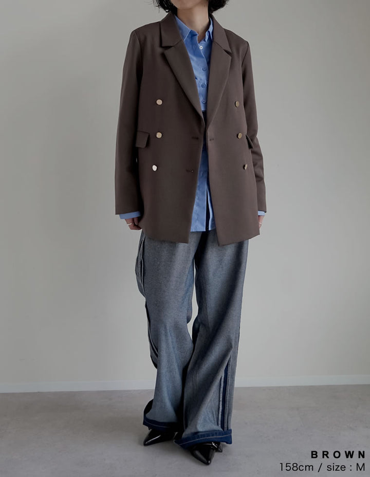 オンオフ問わず取り入れられる、金ボタンテーラードジャケット。