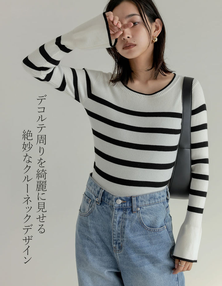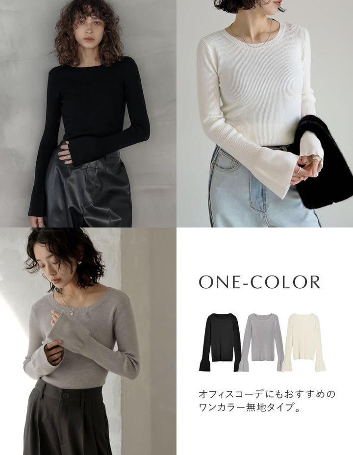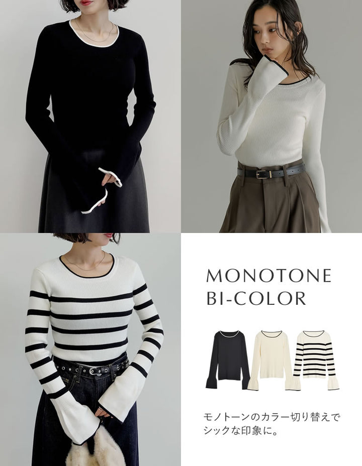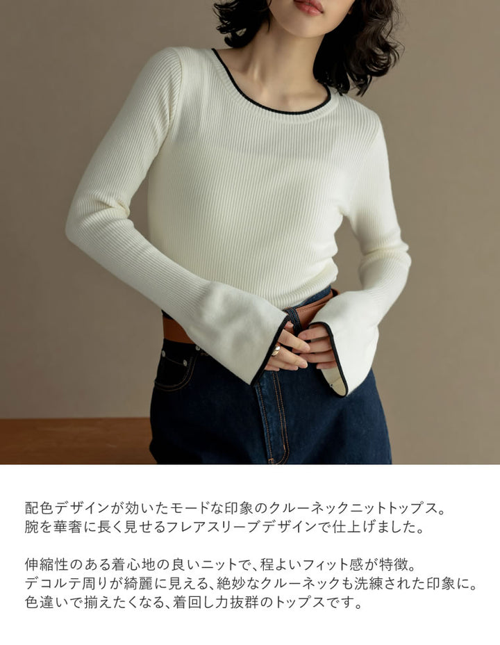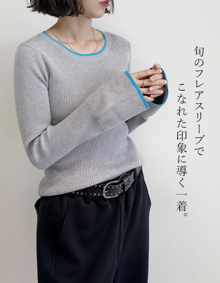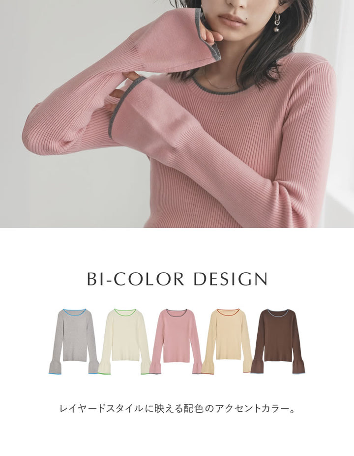 【クーポンで20%OFF ¥3,498⇒¥2,798 】〖クーポンコード:SH_20_2510〗[2025AW COLLECTION][新色追加][販売枚数4万枚!][二の腕すっきり]クルーネックフレアスリーブ配色リブニットトップス