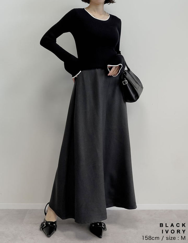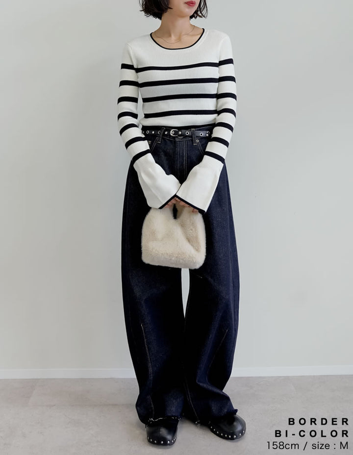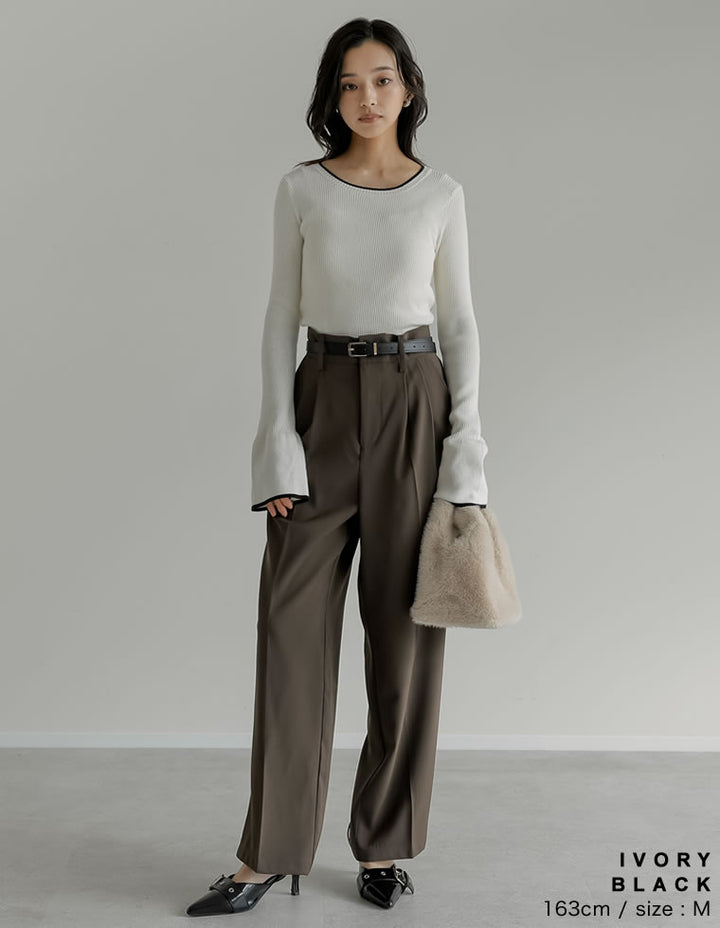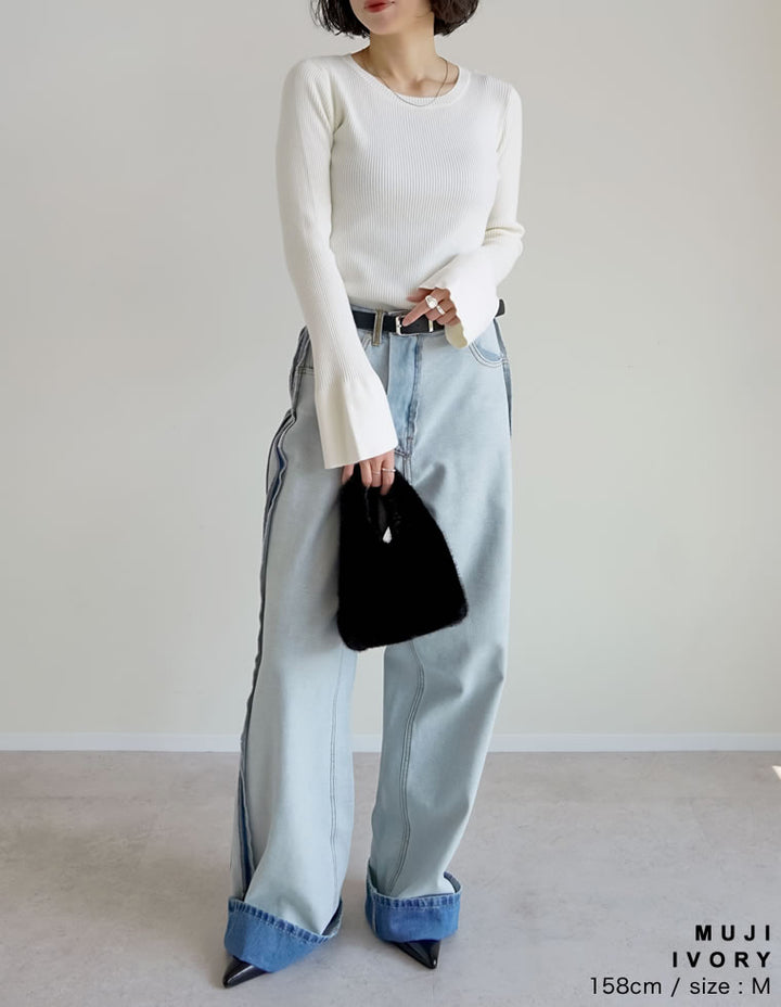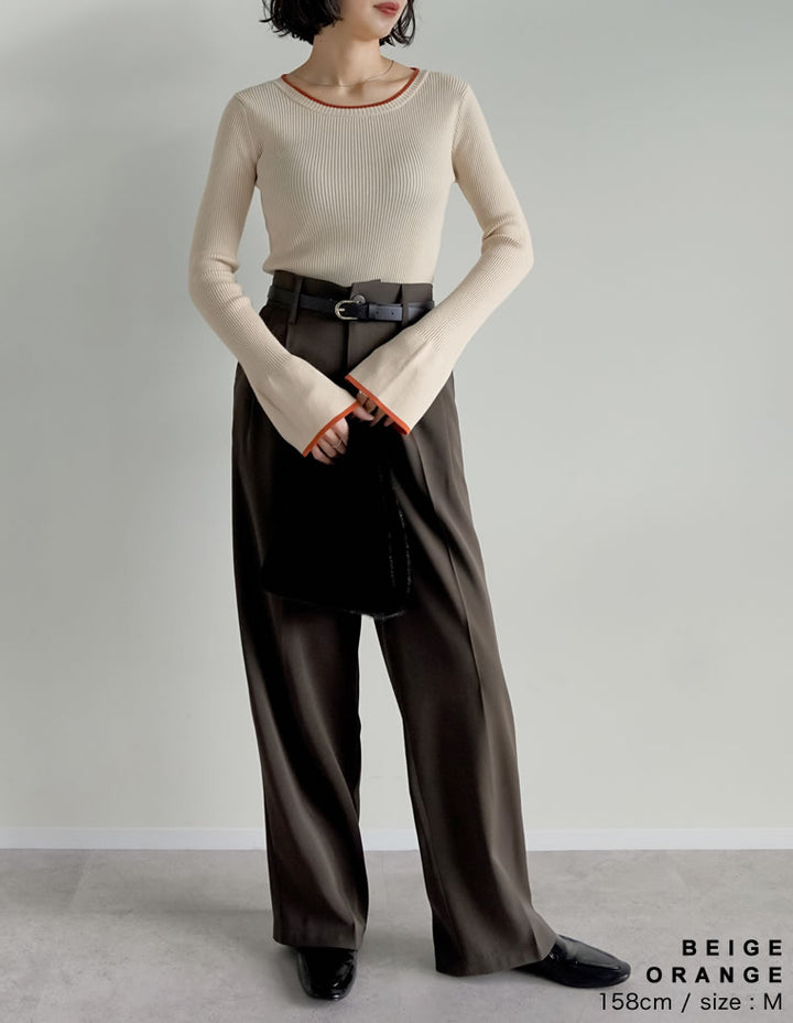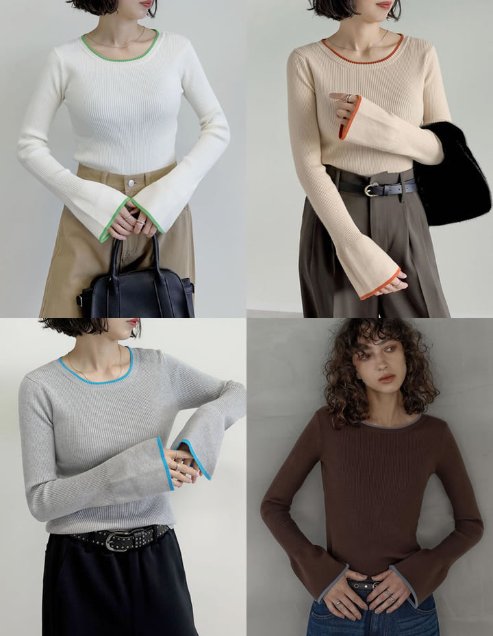 【クーポンで20%OFF ¥3,498⇒¥2,798 】〖クーポンコード:SH_20_2510〗[2025AW COLLECTION][新色追加][販売枚数4万枚!][二の腕すっきり]クルーネックフレアスリーブ配色リブニットトップス