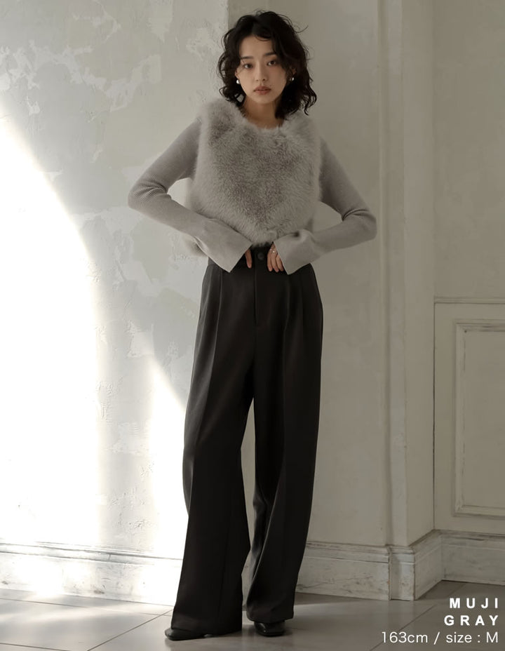 シンプルながらもぐっとこなれた雰囲気に仕上がるリブニットトップスです。