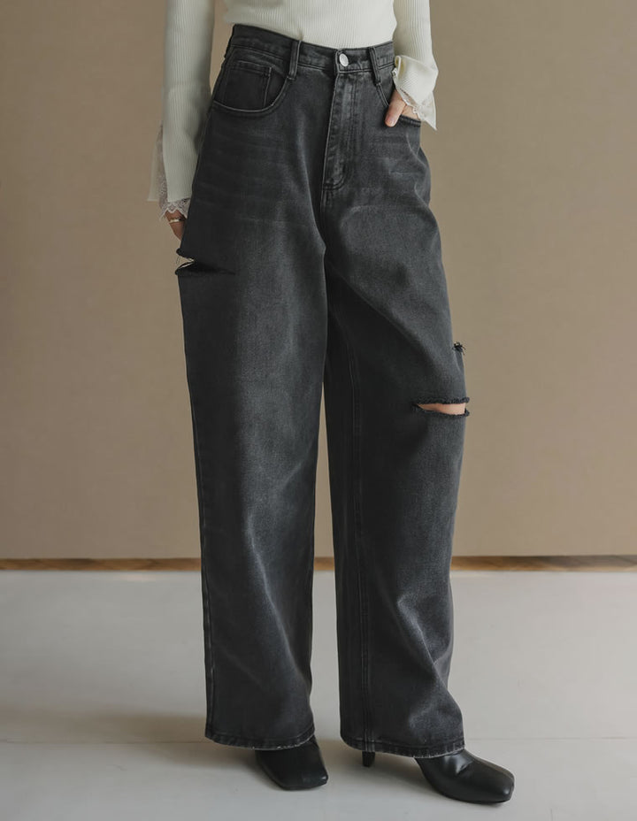 トレンドのルーズシルエットで、脚長効果のあるデニムパンツ。