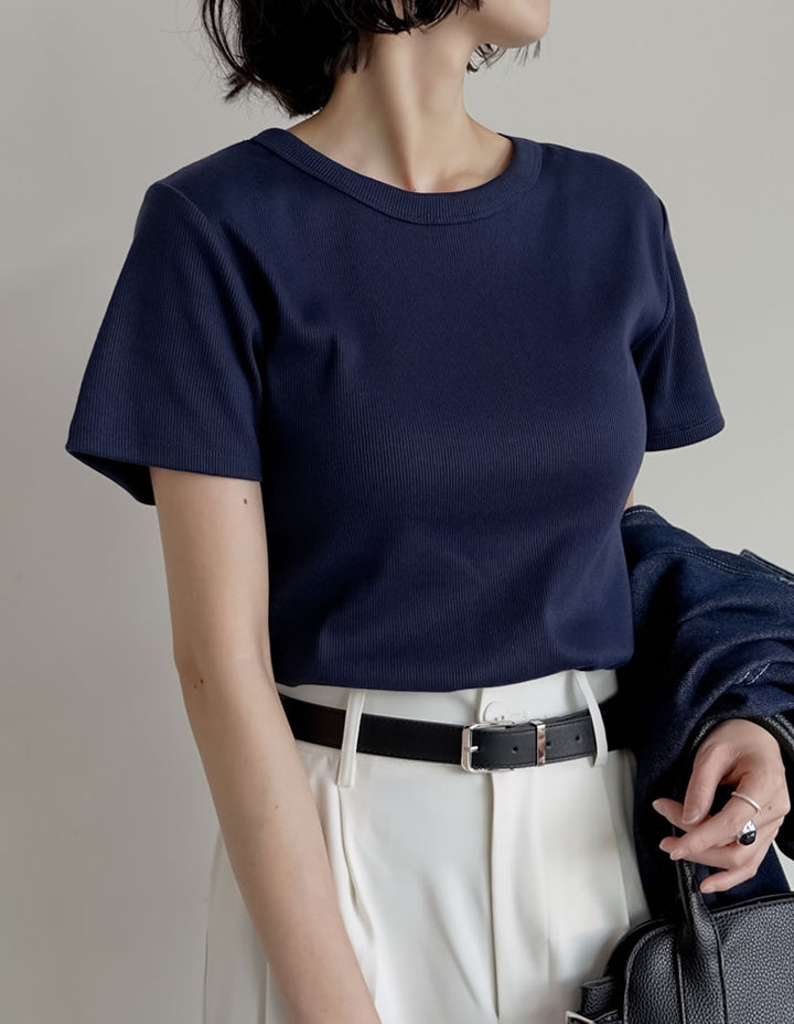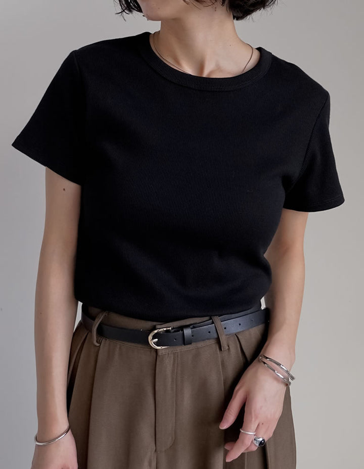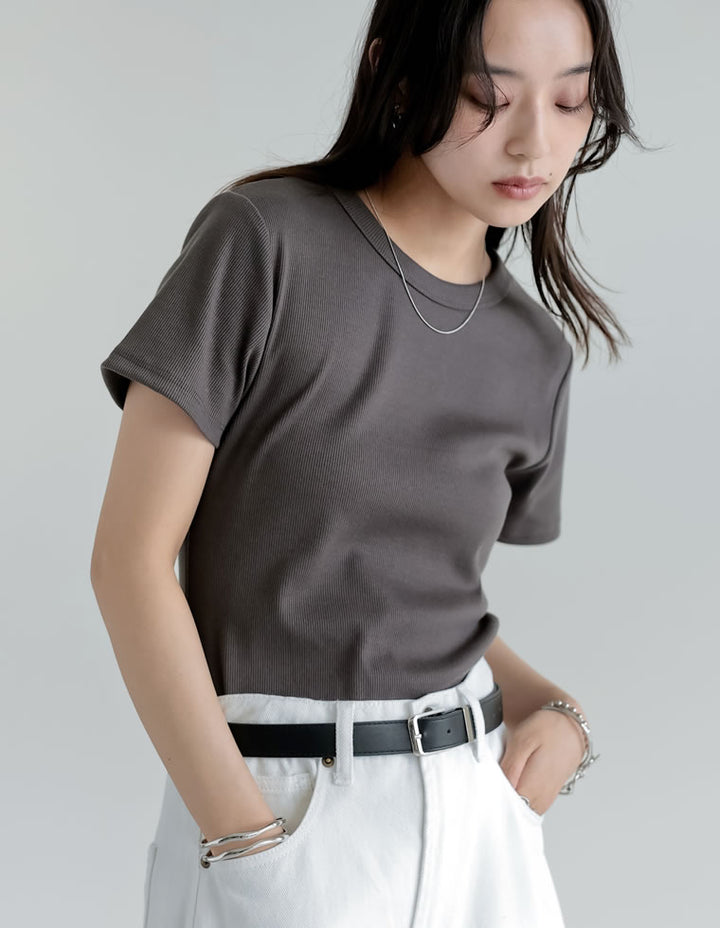 【TIME SALE 15%OFF】[累計販売枚数1.5万枚突破][華奢見えリブTシャツ]テレコリブクルーネック半袖Tシャツ[mb]