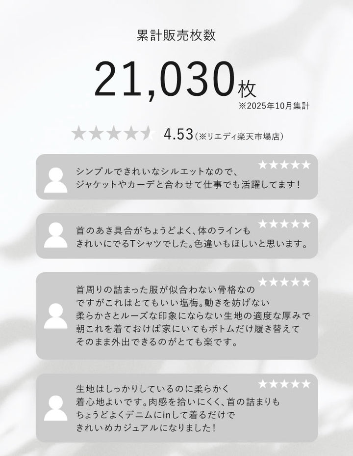 累計販売枚数2.1万枚突破!(2025年10月時点)例年大好評のリブTシャツS・M・L・XLの4サイズ展開で、今年も発売!骨格問わずきれいに着られる、大人気のテレコリブTシャツです。