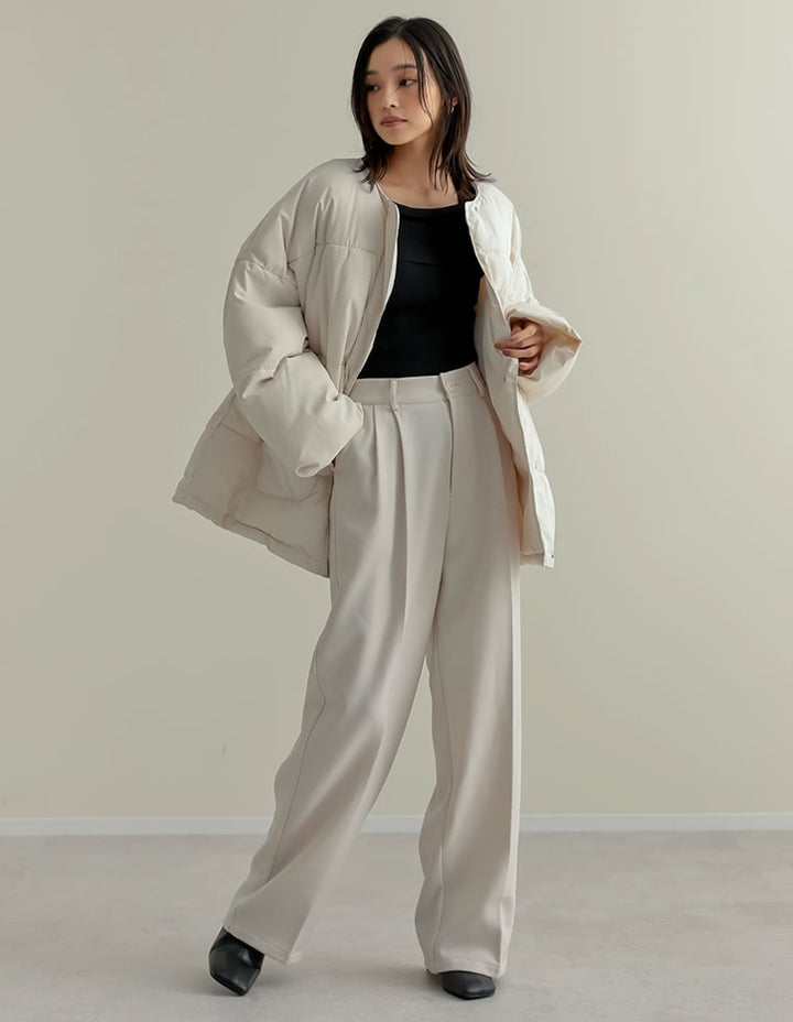 マフラーの有り無しで違った印象の着こなしが楽しめます。