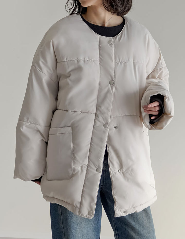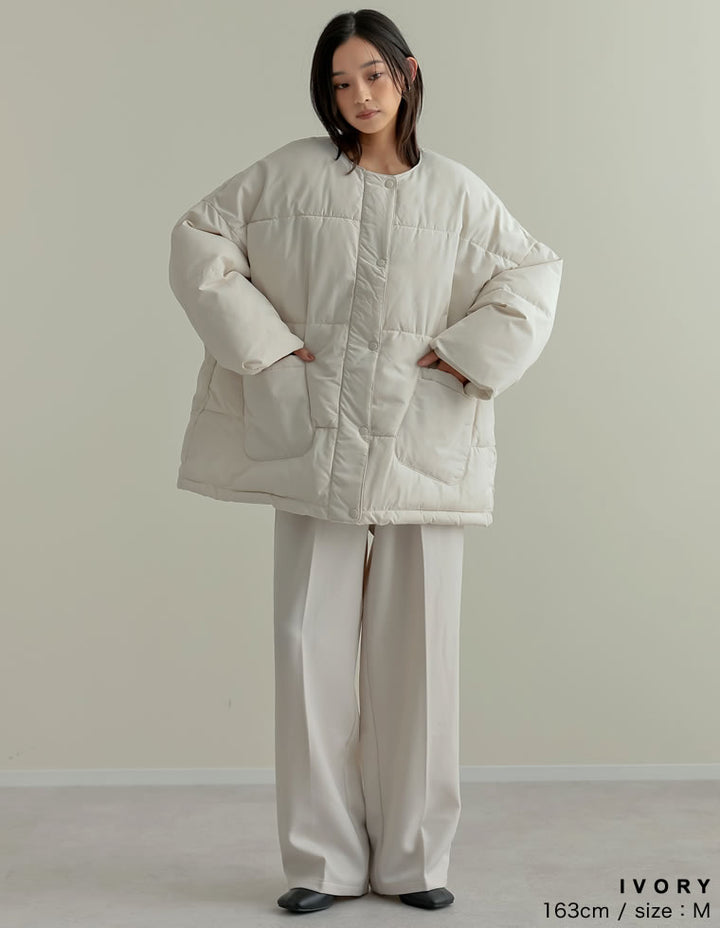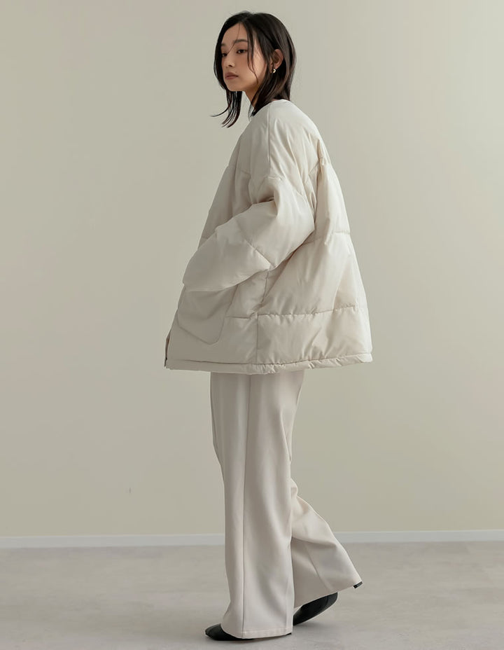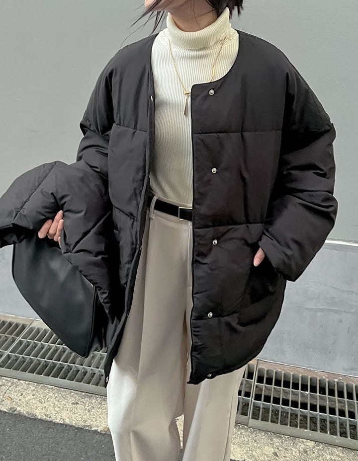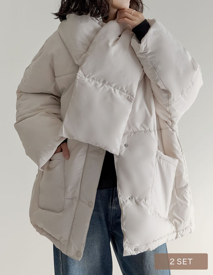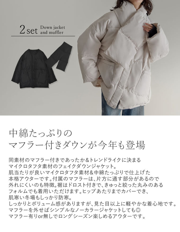 [2点セット]マイクロタフタマフラー付きノーカラー中綿フェイクダウンジャケット