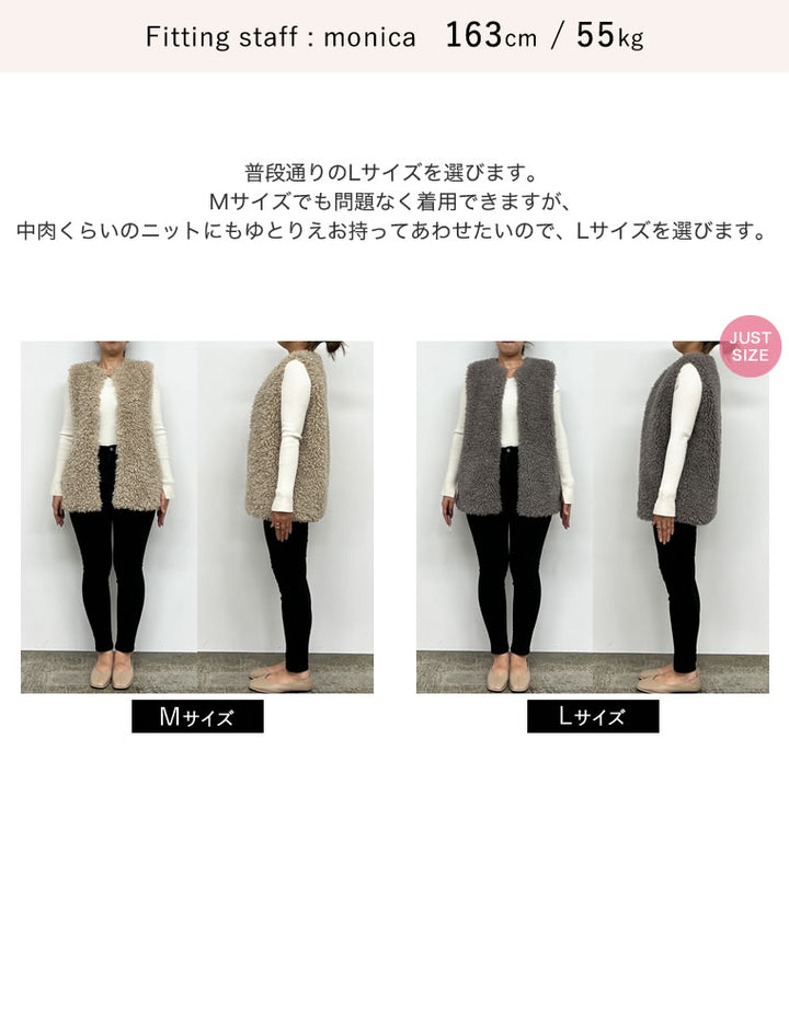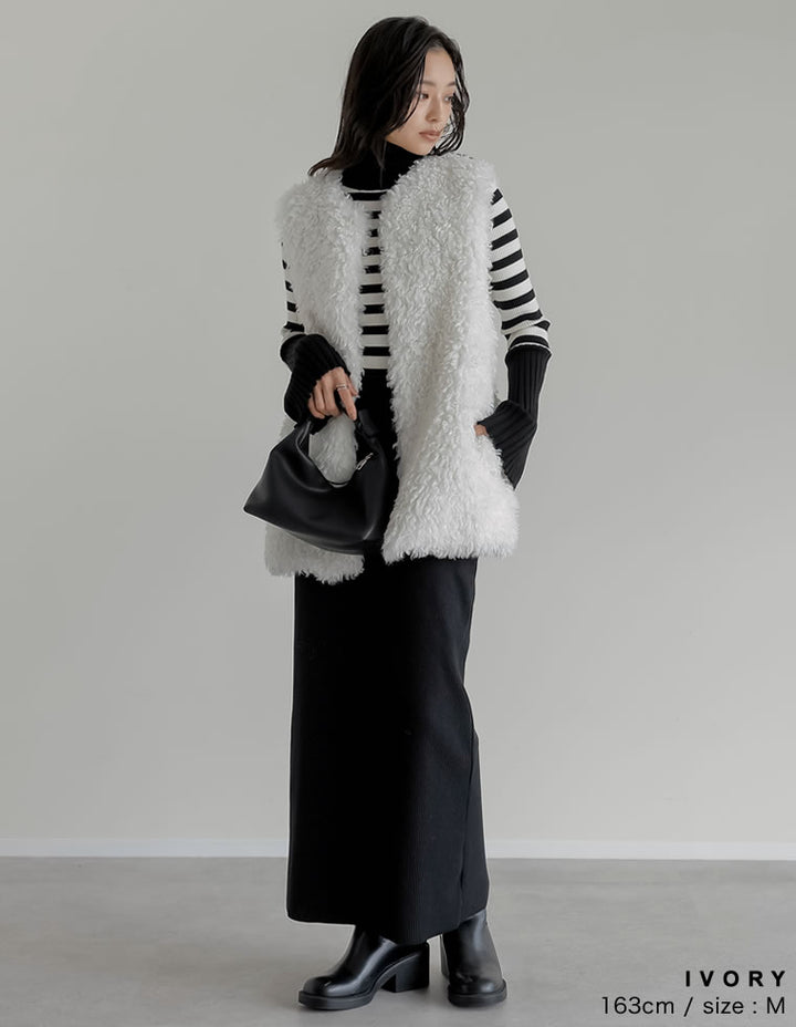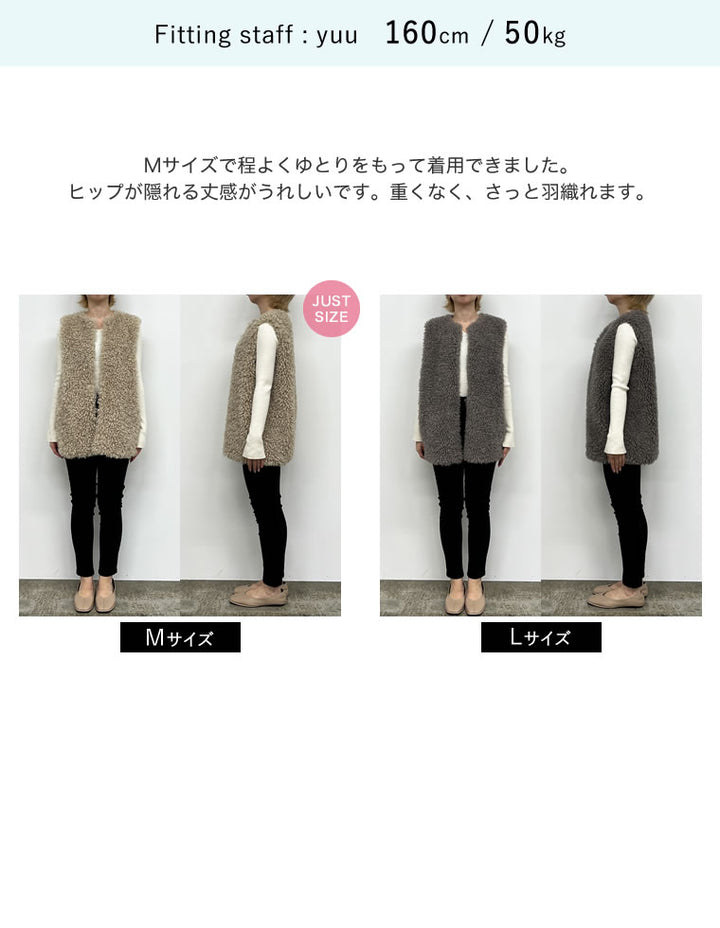 ふんわり軽くてさっと羽織れる、秋冬に大活躍のフェイクファーベストです。