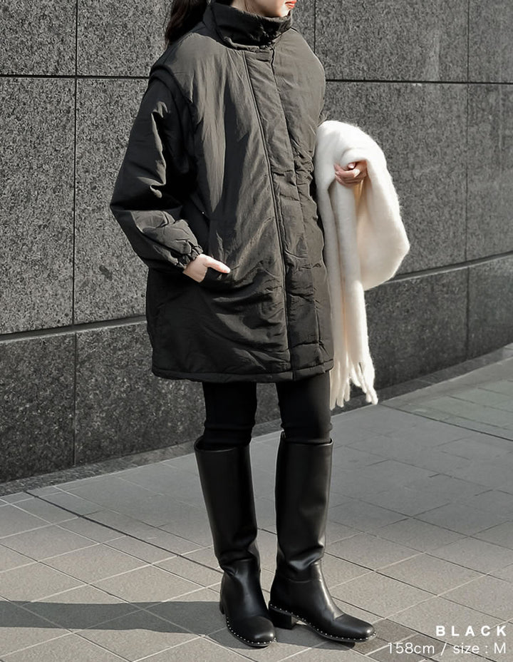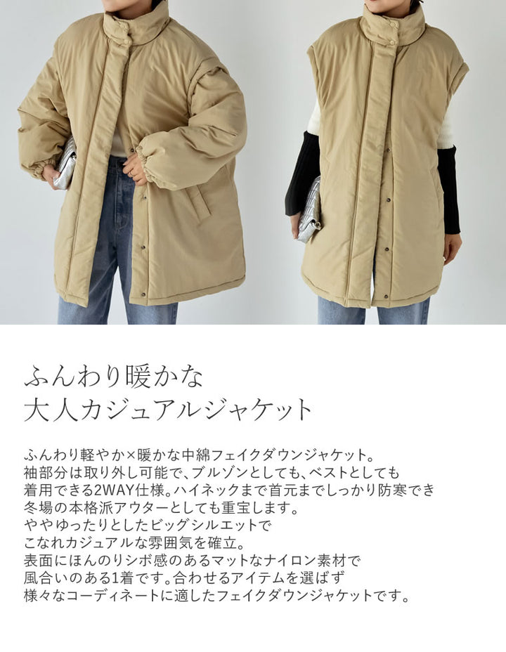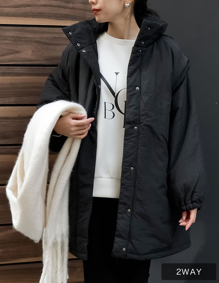 [低身長サイズ有]2WAYミドル丈ダウンライク中綿ジャケット