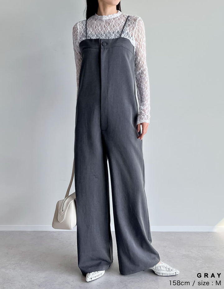 モードな雰囲気に決まる大人のキャミサロペットです。