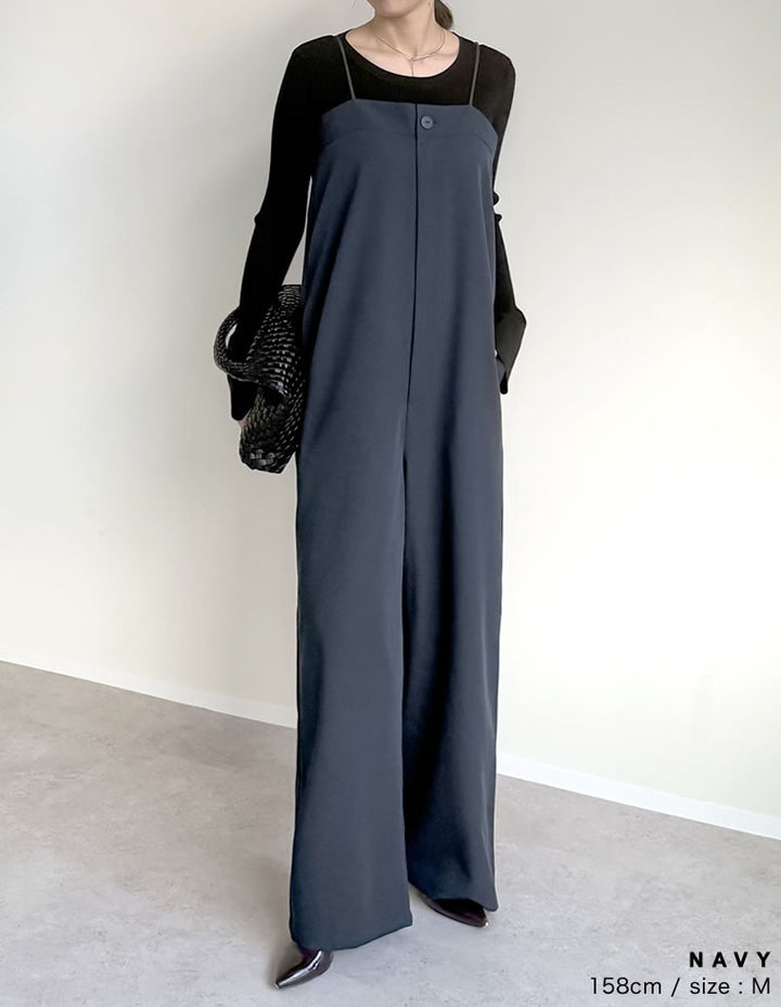 【TIME SALE 10%OFF】[累計販売枚数1万枚突破][低身長/高身長サイズ有][体型カバー]ワンボタンベアキャミサロペット