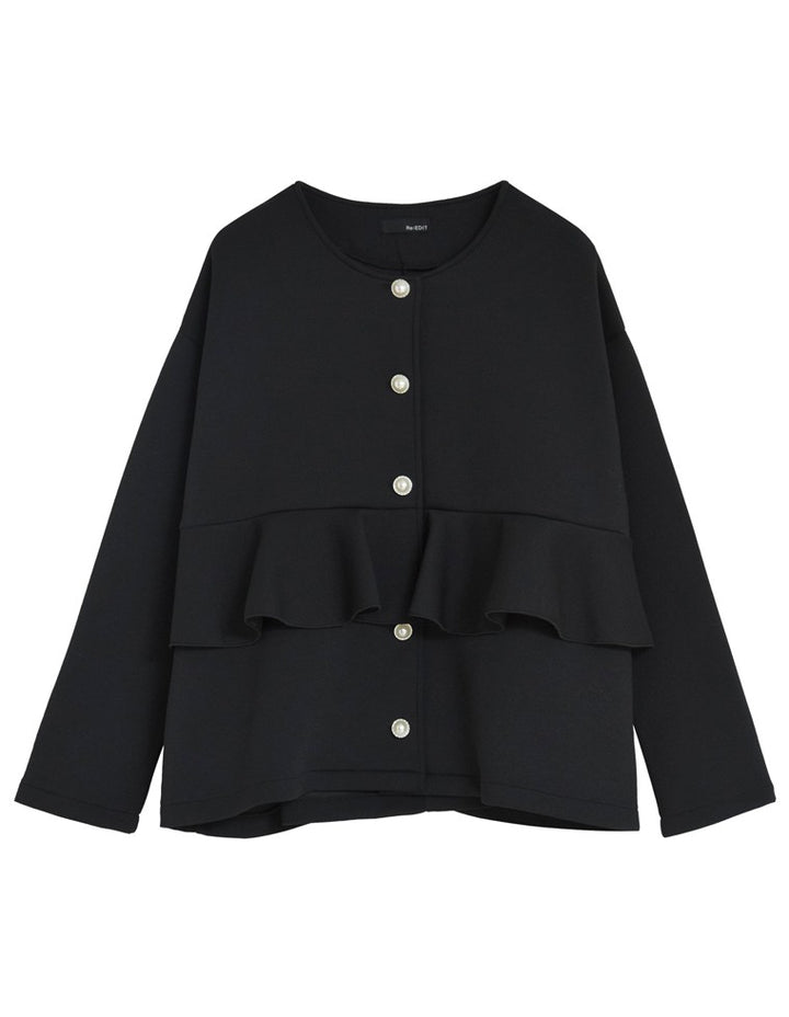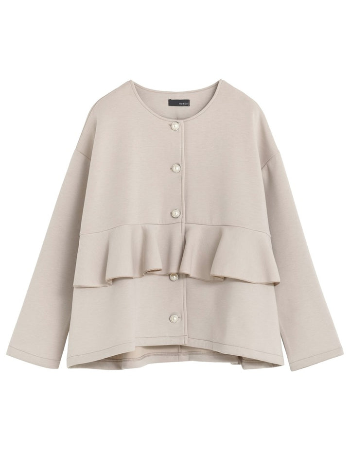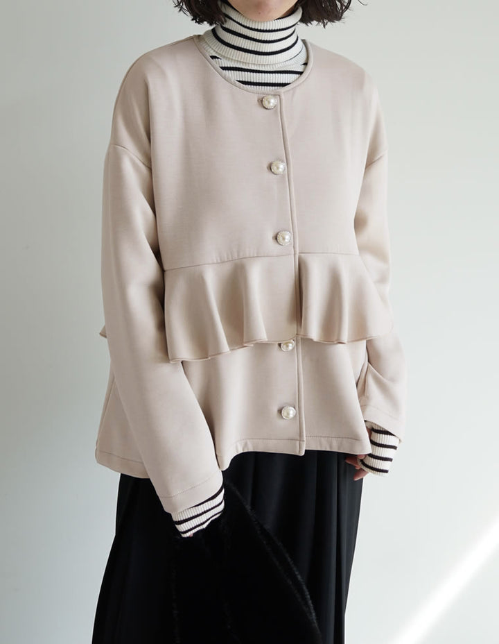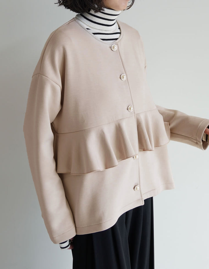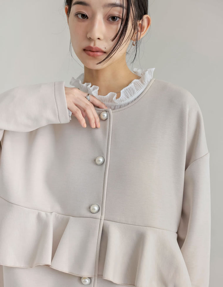 【TIME SALE 10%OFF】パールモチーフボタンフリルダンボールブルゾン