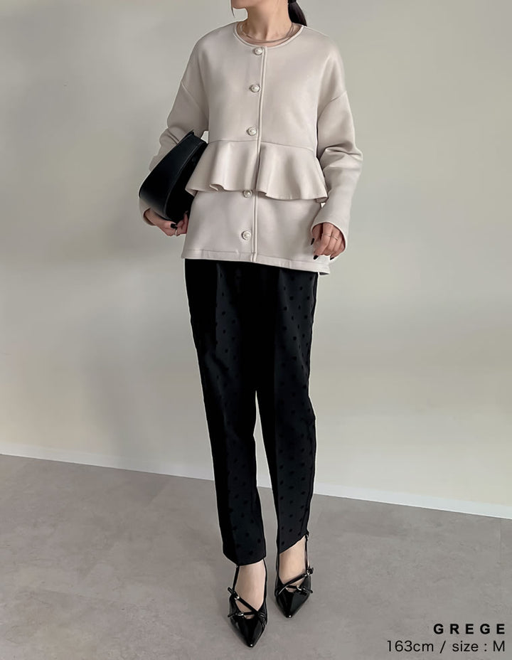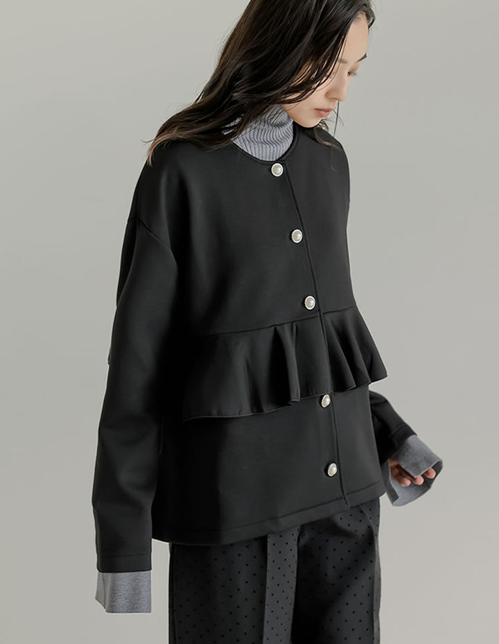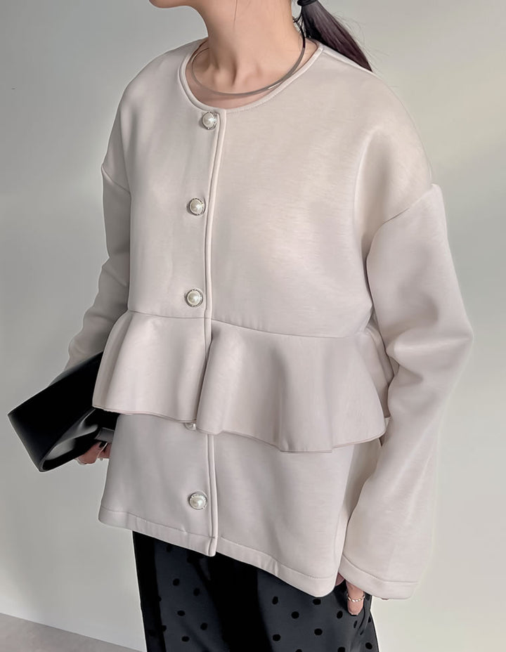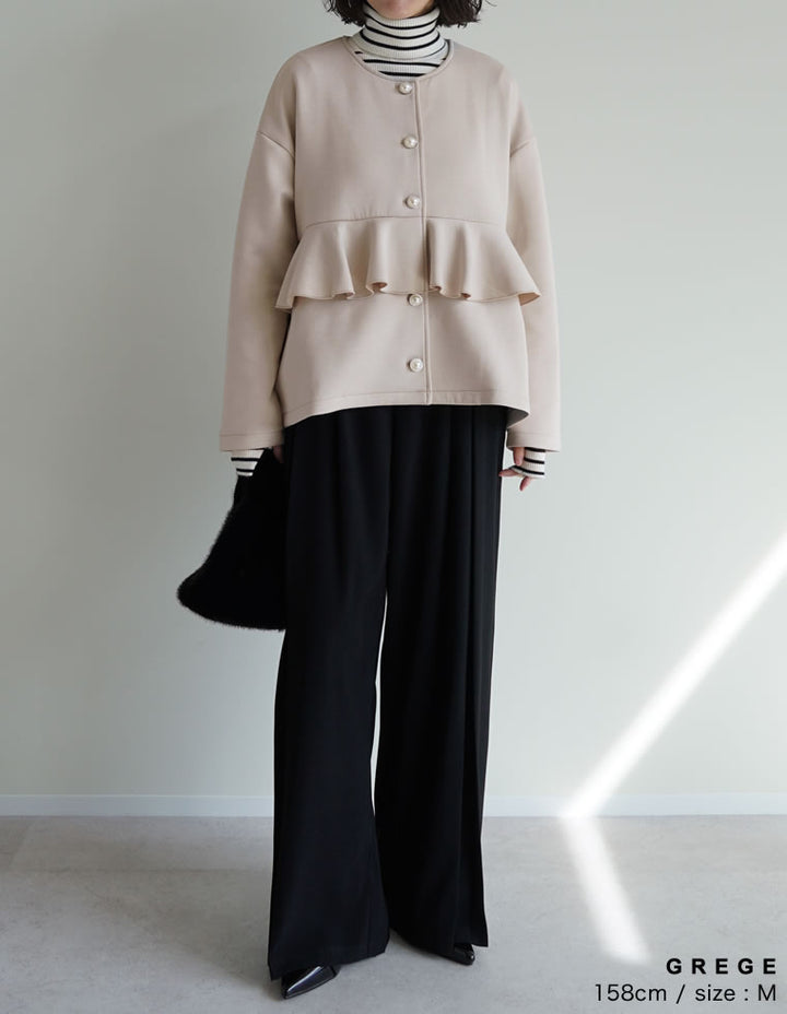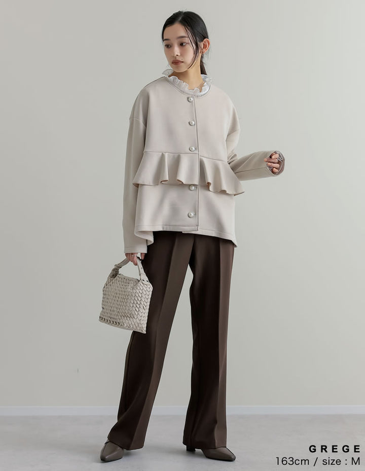 【TIME SALE 10%OFF】パールモチーフボタンフリルダンボールブルゾン