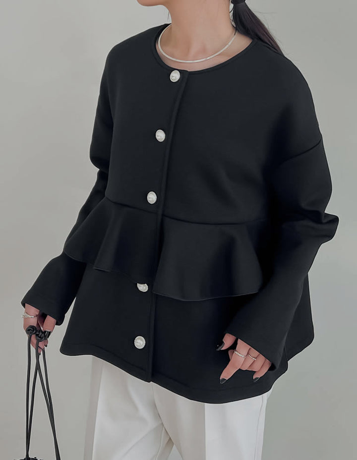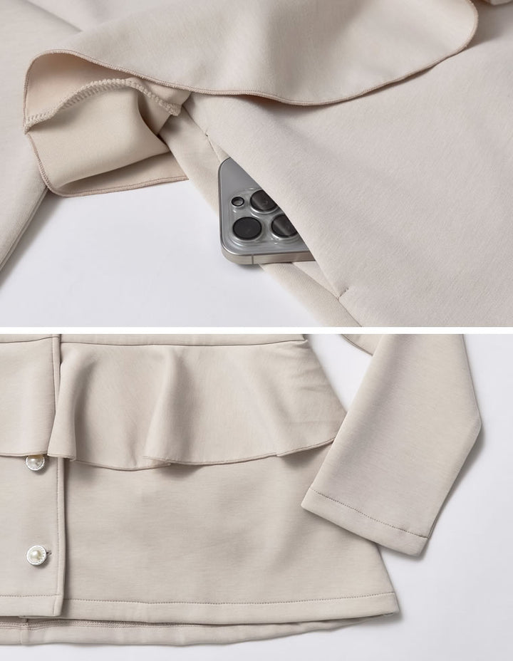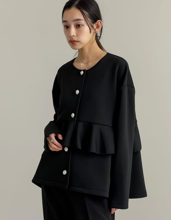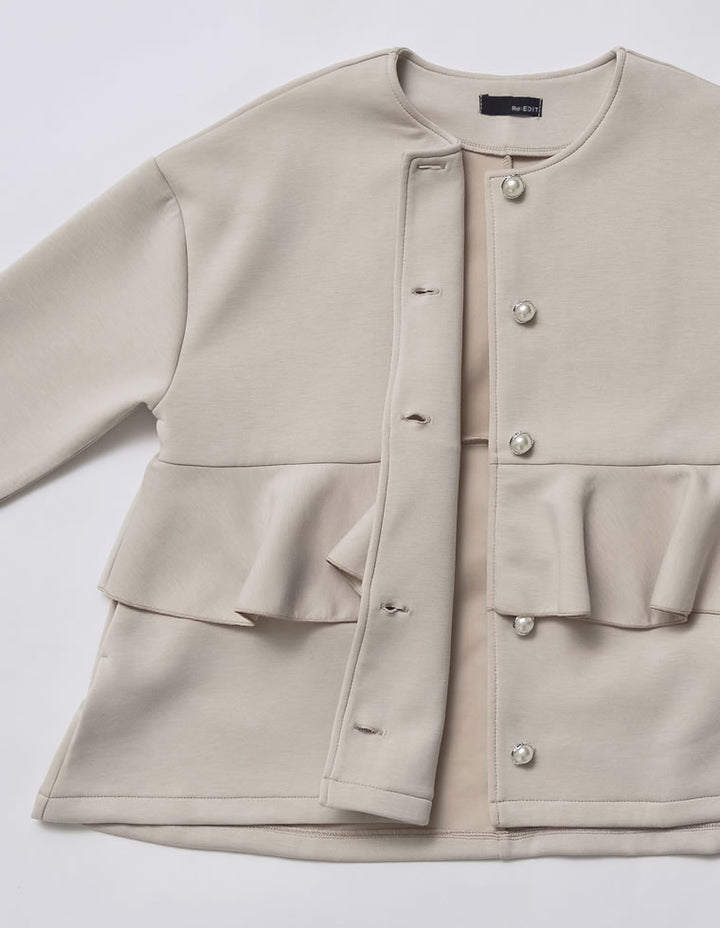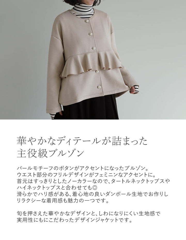 旬を押さえた華やかなデザインと、しわになりにくい生地感で、実用性にもこだわったデザインジャケットです。