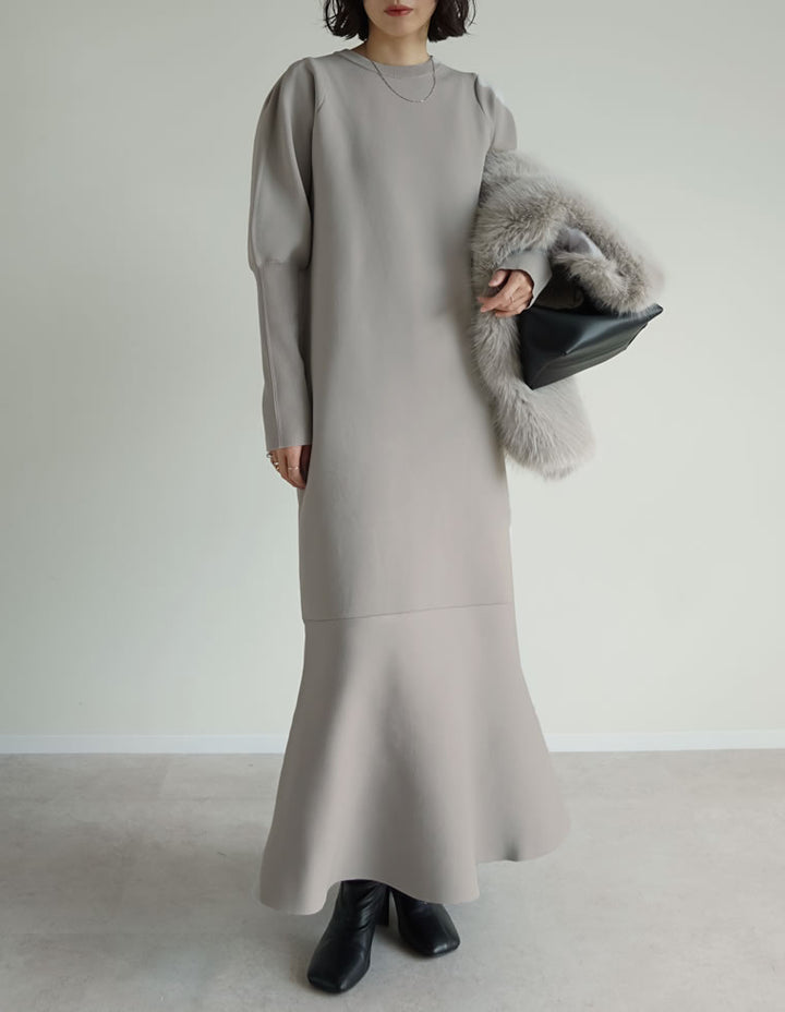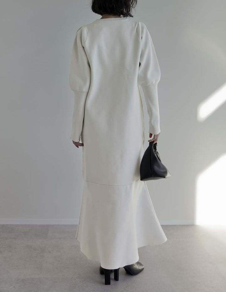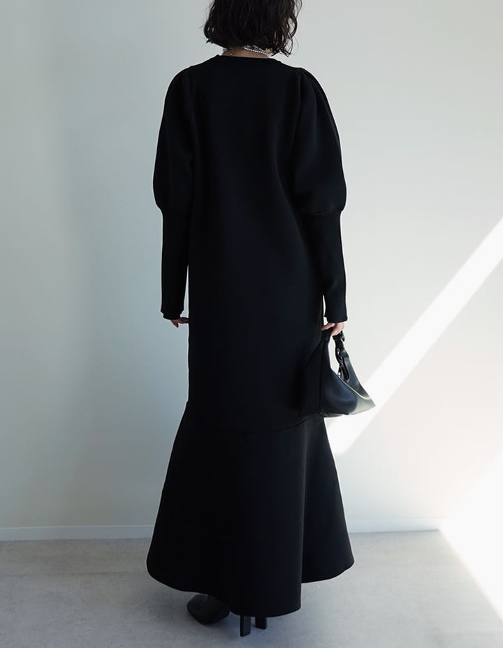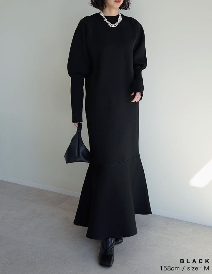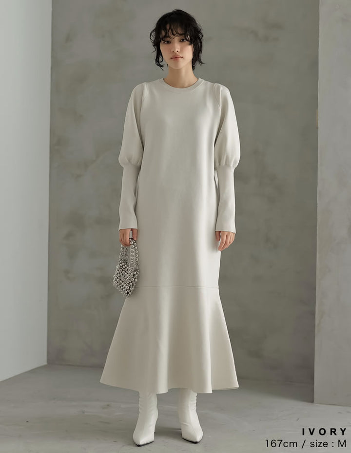 【TIME SALE 20%OFF】[低身長サイズ有]ミラノリブパフスリーブスポンジニットマーメイドワンピース