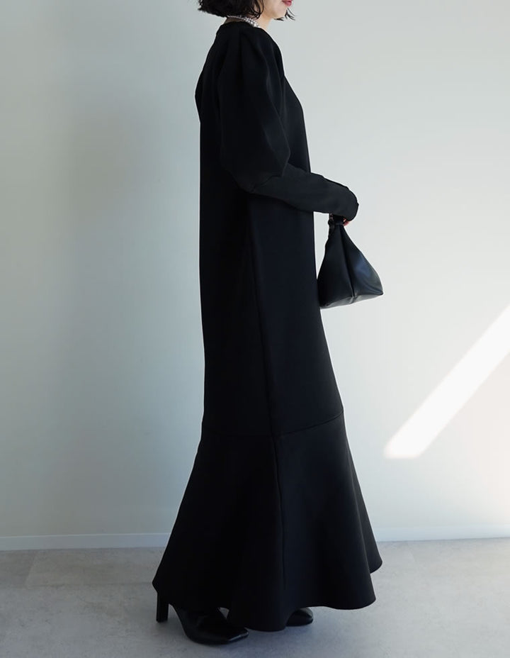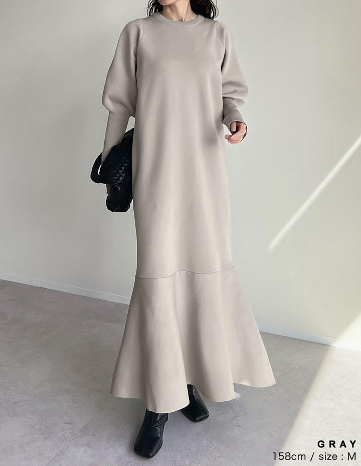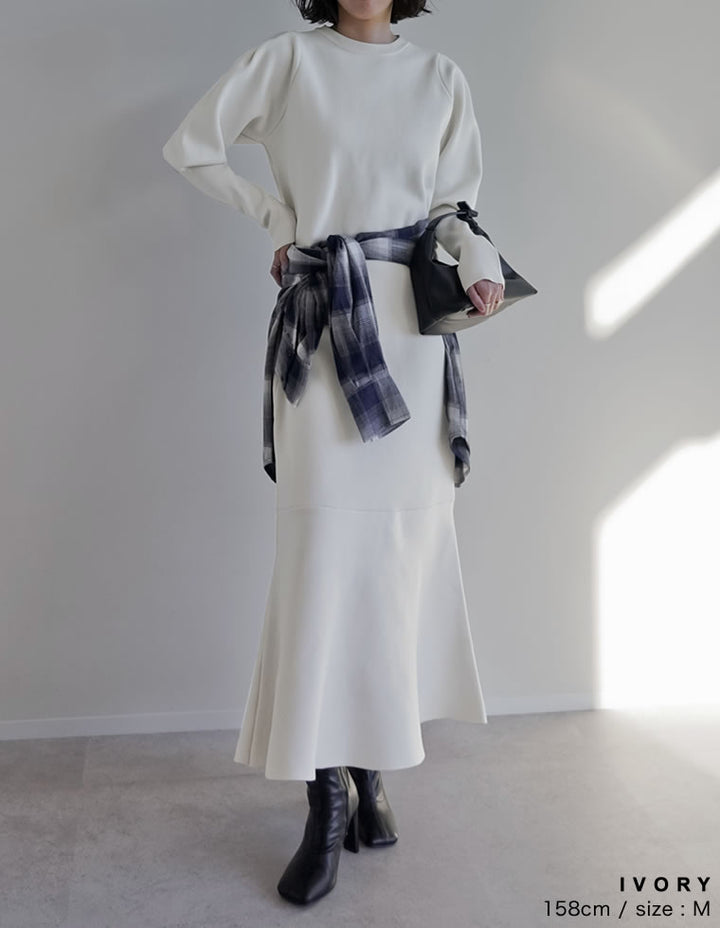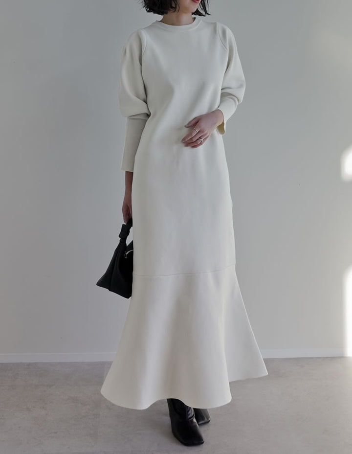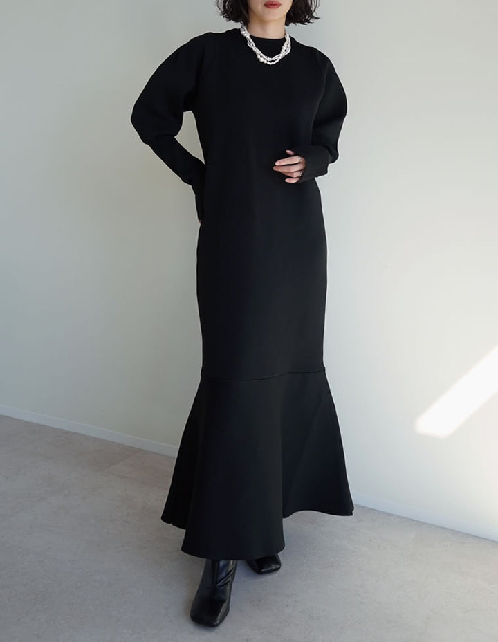 【TIME SALE 20%OFF】[低身長サイズ有]ミラノリブパフスリーブスポンジニットマーメイドワンピース