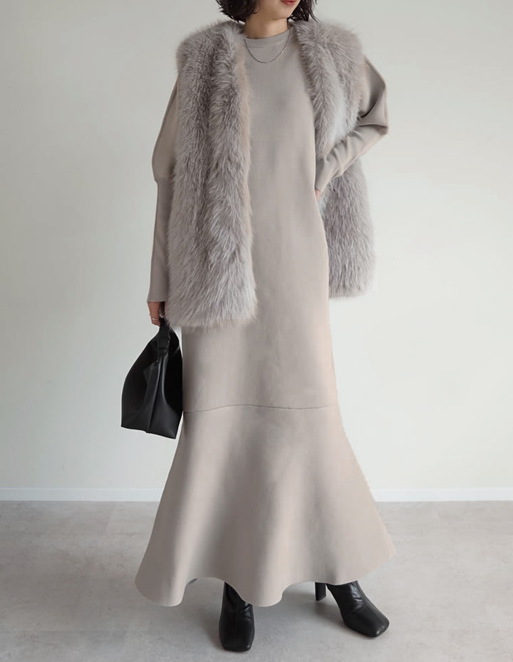 カジュアルすぎないシルエットと生地感で、大人モードに着こなせるニットワンピースです。