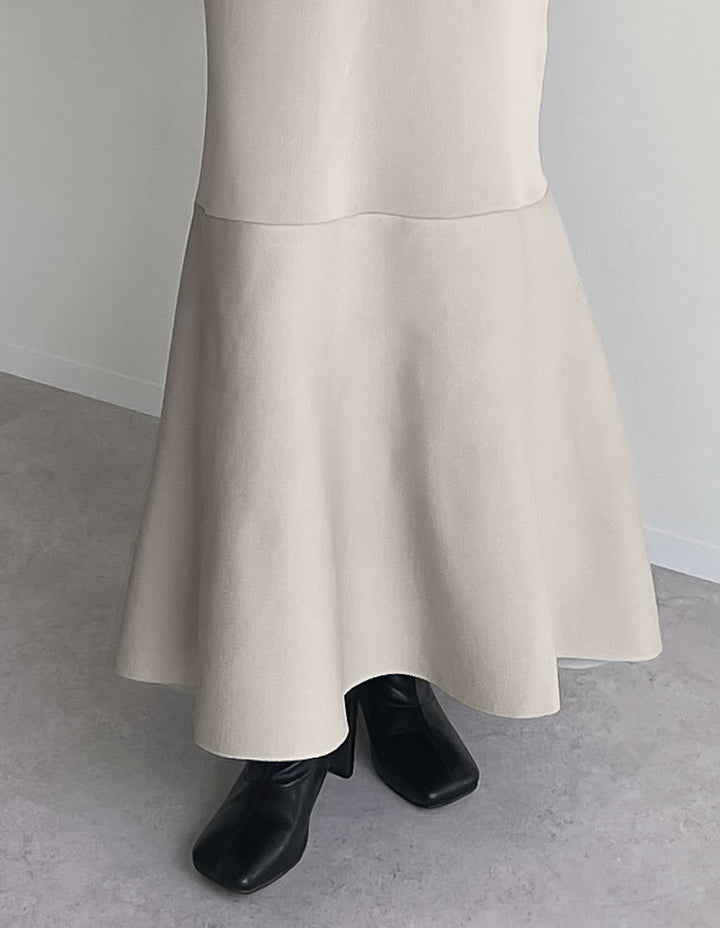 裾はフレアラインを描くマーメイドシルエットで、エレガントさも演出します。