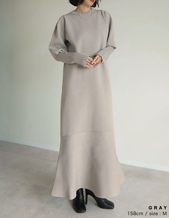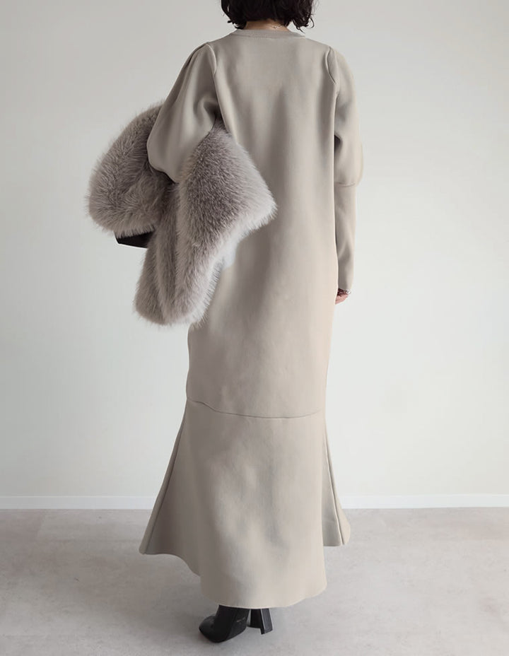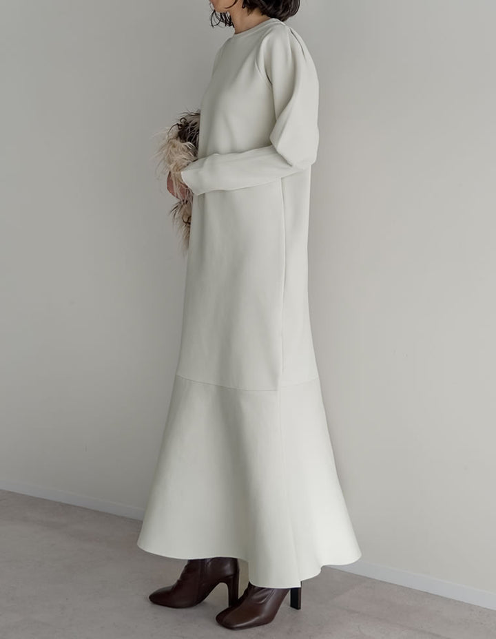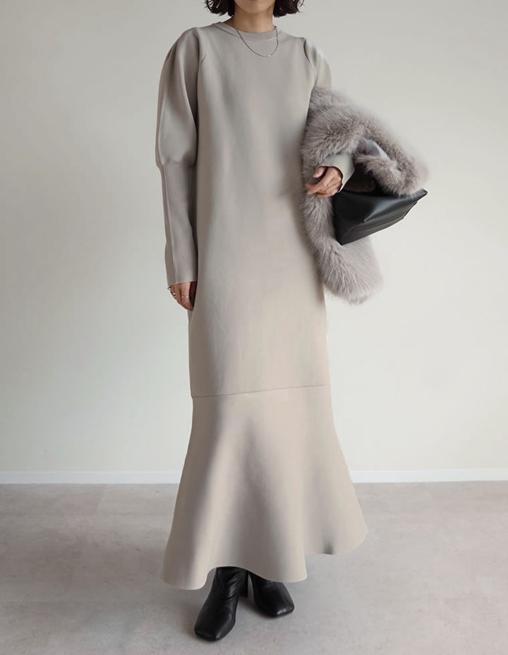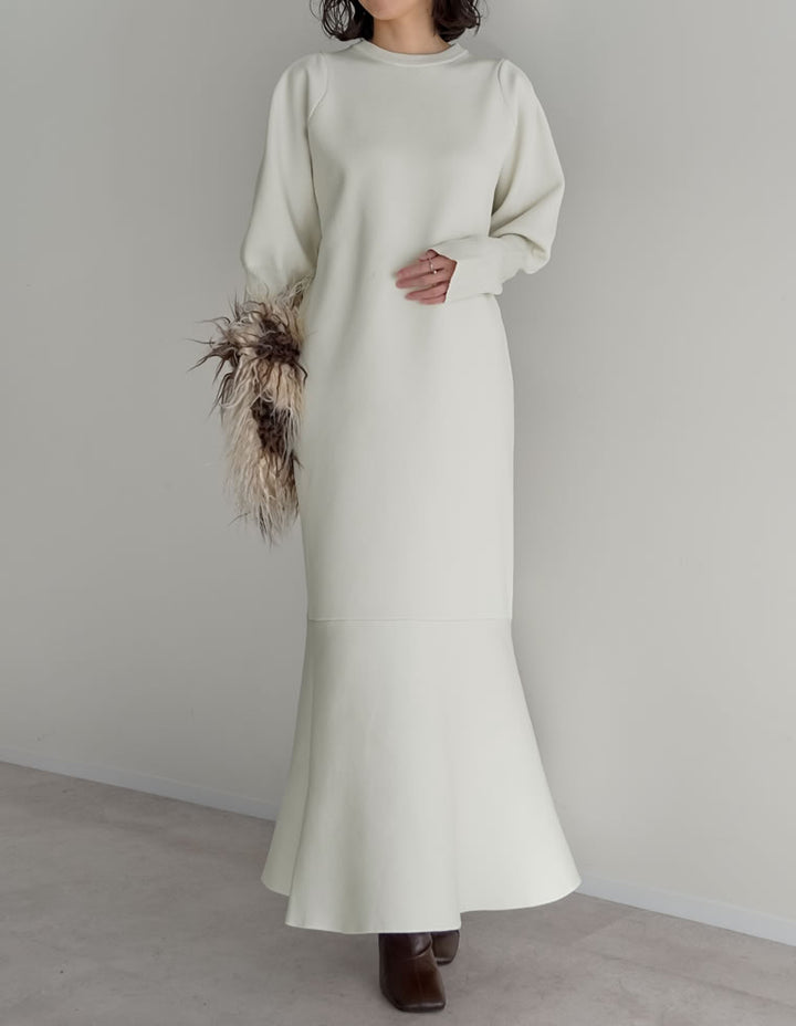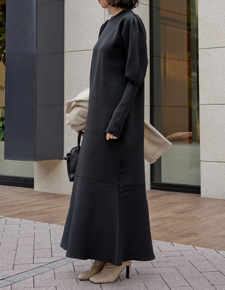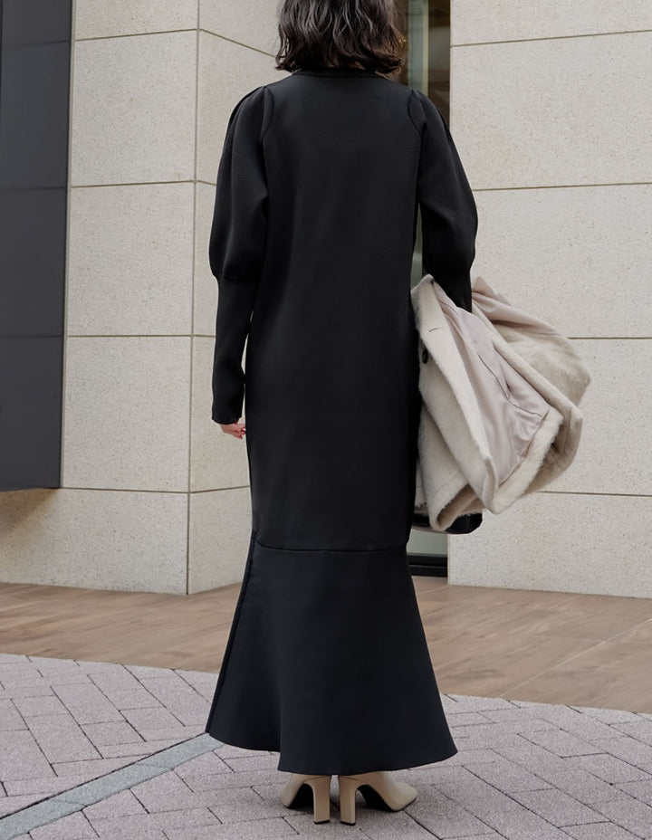 [低身長サイズ有]ミラノリブパフスリーブスポンジニットマーメイドワンピース