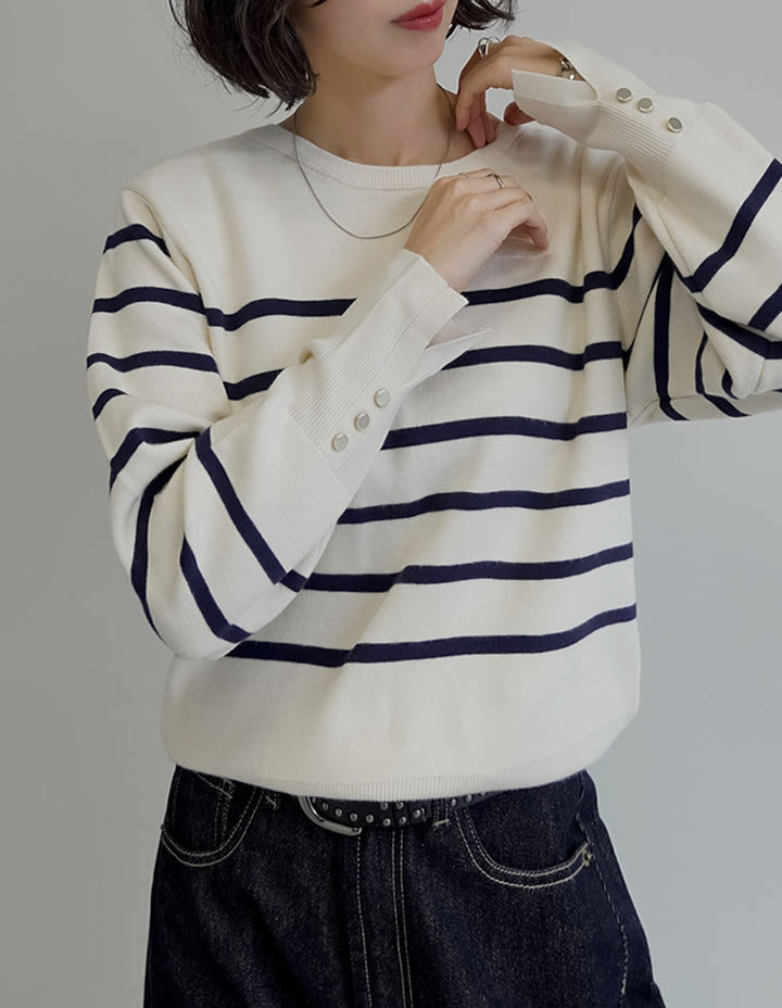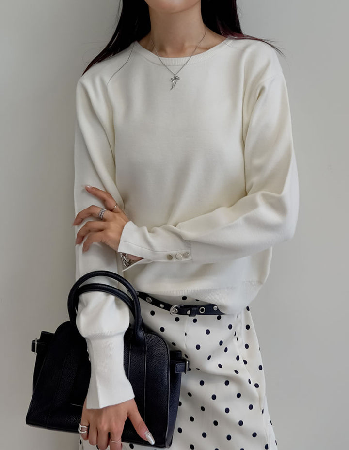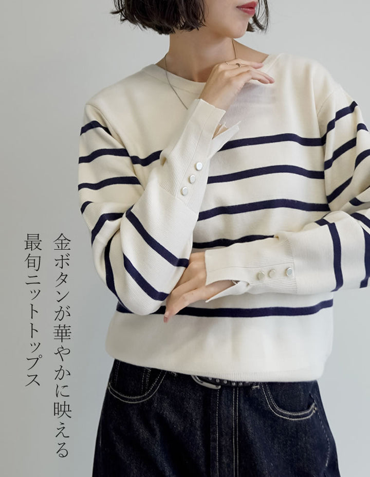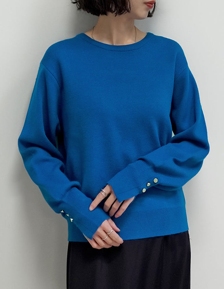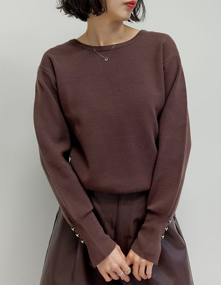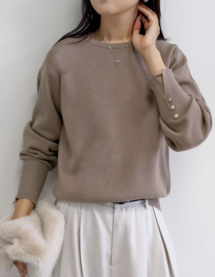 【クーポンで20%OFF ¥3,747⇒¥2,997 】〖クーポンコード:SH_20_2510〗ミラノリブ袖ボタンクルーネックニットトップス[mb]