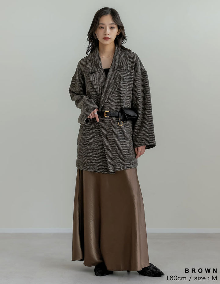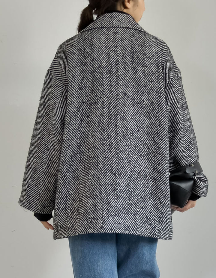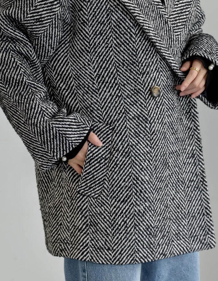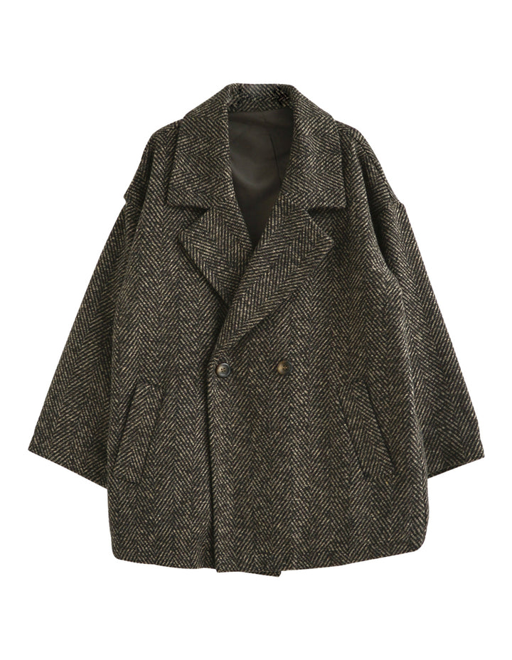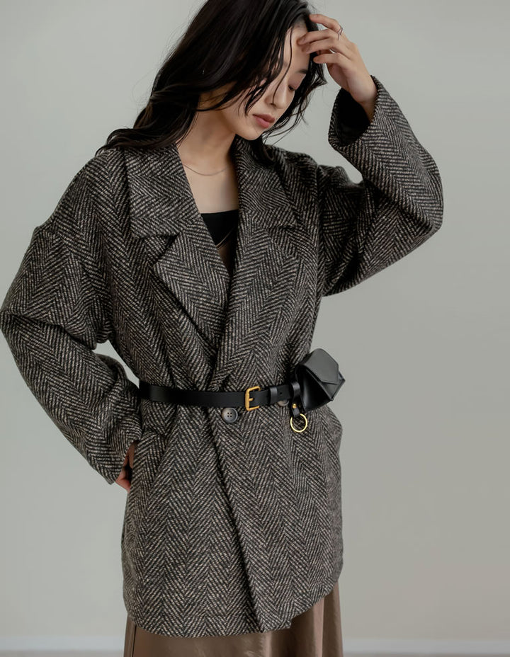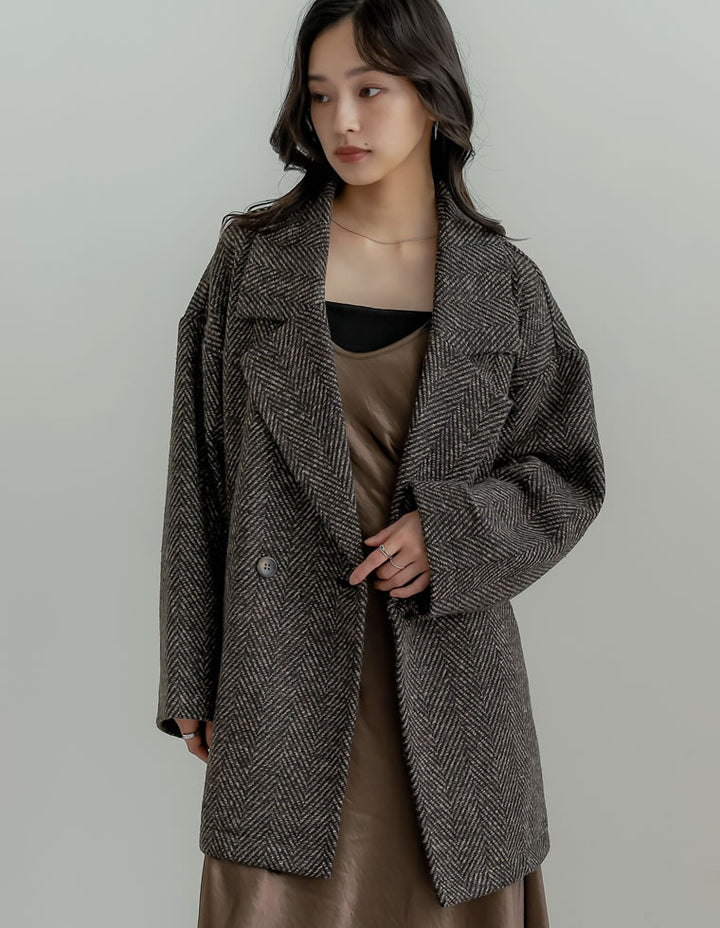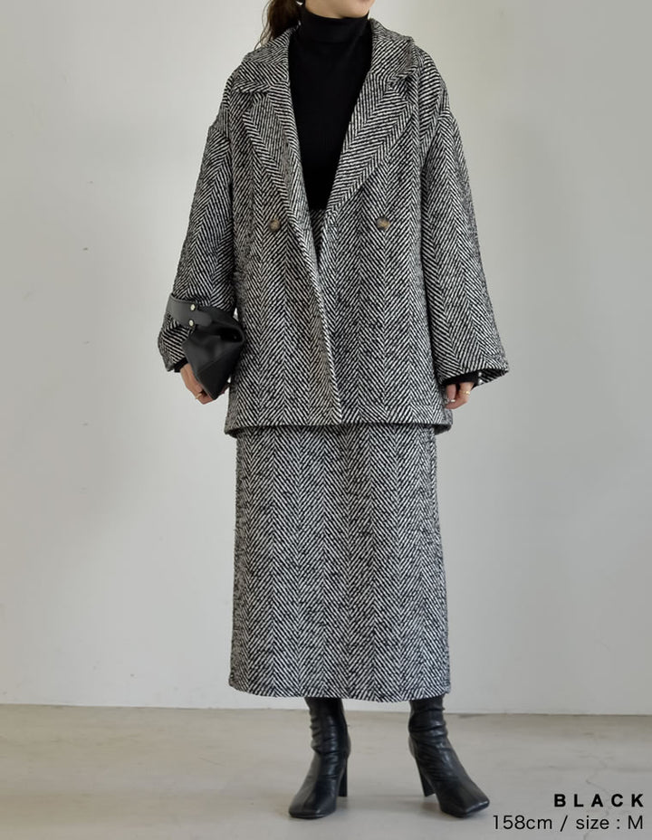 ざっくりとした生地感のヘリンボーン柄が印象的なダブルジャケット。