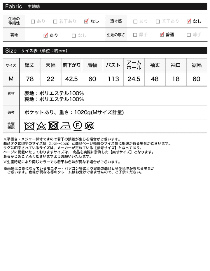 洗濯・アイロンをする際は、商品タグの品質表示をご確認ください。
