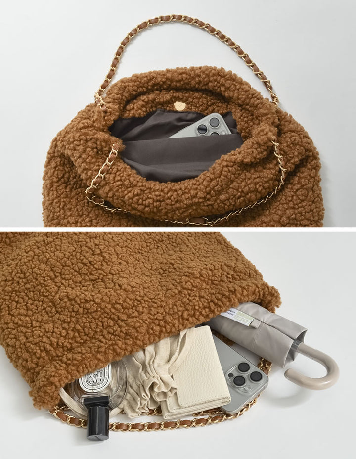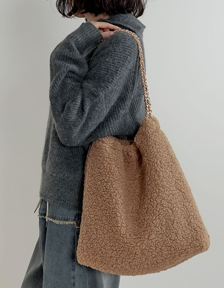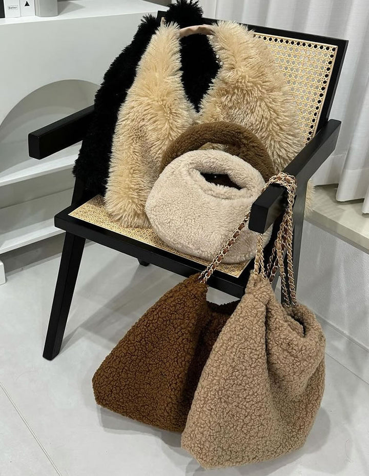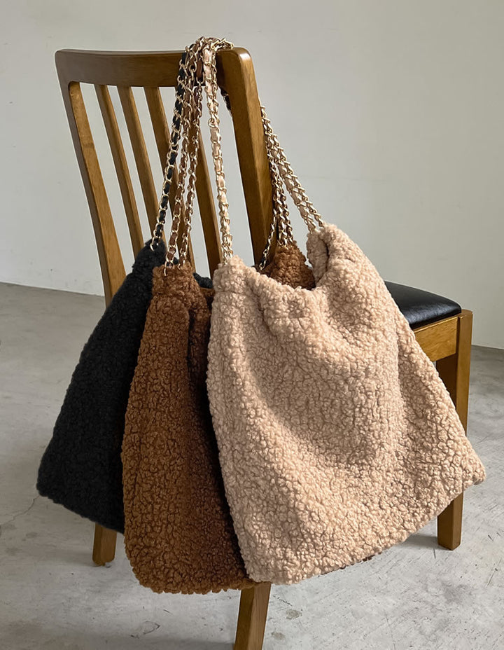 もこもことしたテディボアとチェーンストラップの組み合わせが旬のボアバッグが今年も登場。