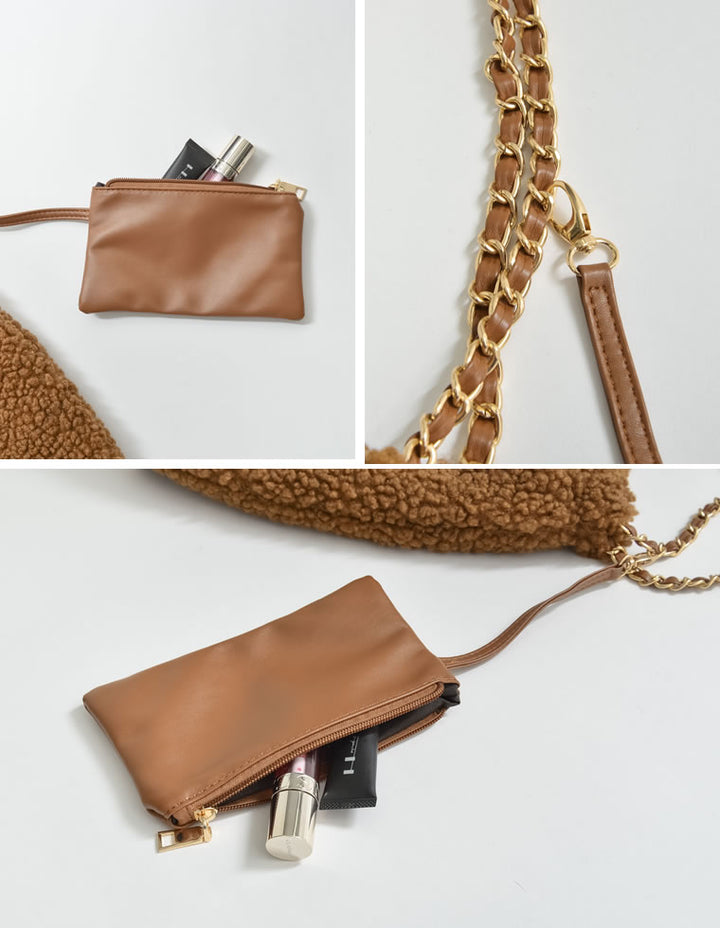 [2点セット]ミニポーチ付テディボアチェーンストラップバッグ