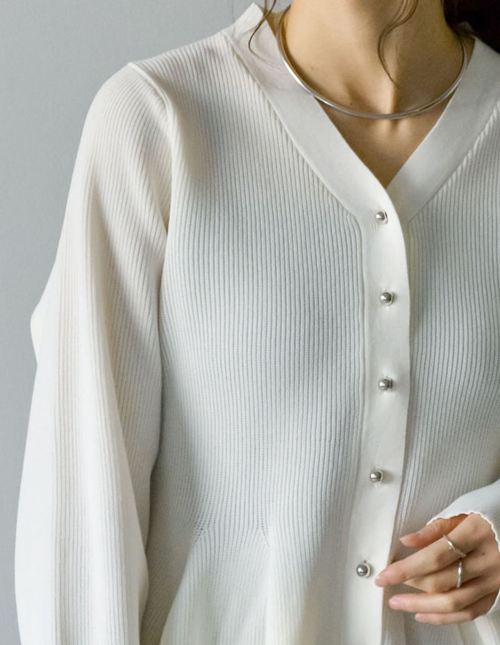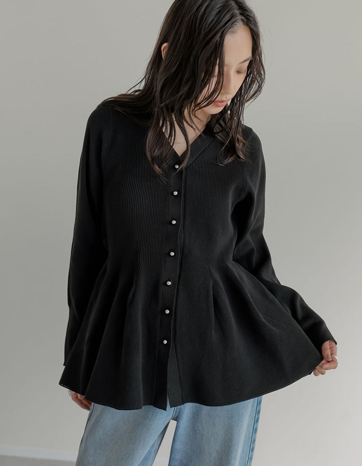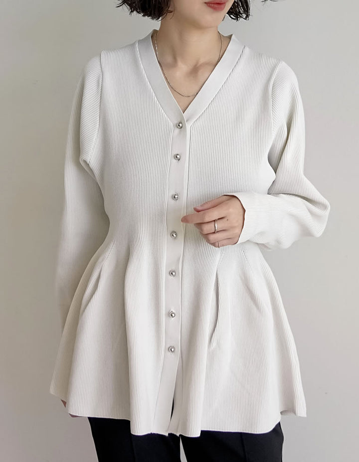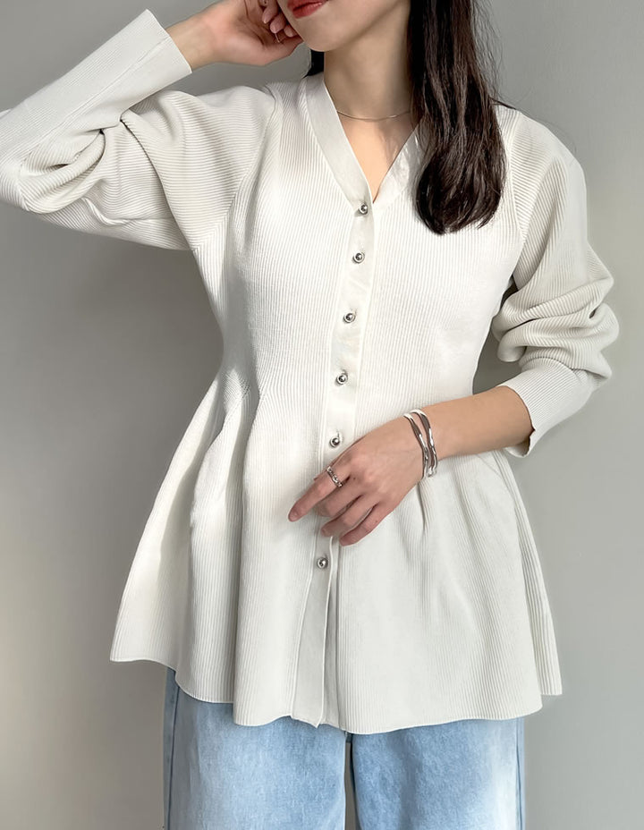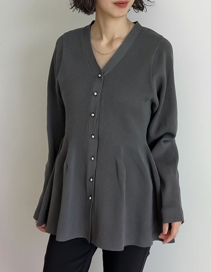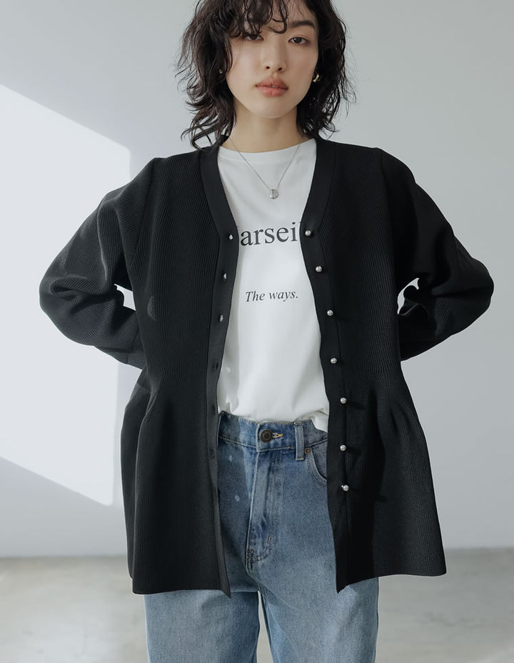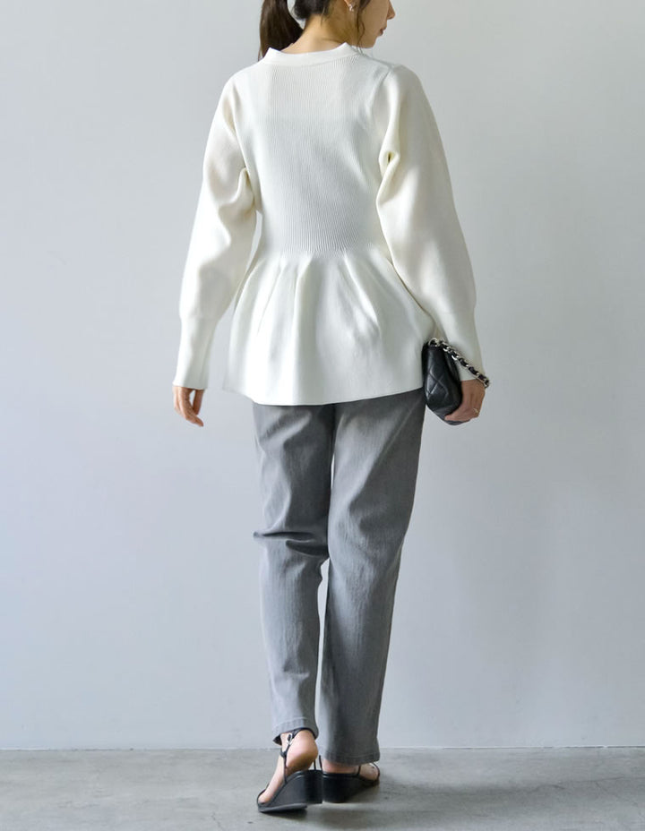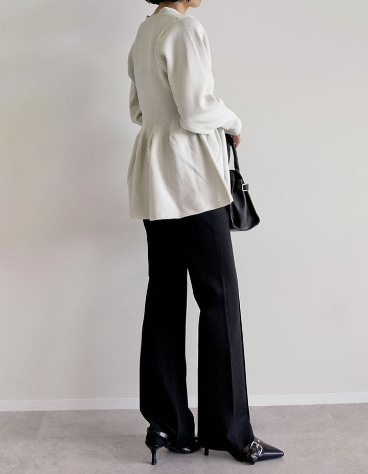 フェミニンなペプラムデザインで仕上げたスポンジニットカーディガン。ウエストから広がるフレアシルエットが、旬のレディな雰囲気を演出します。