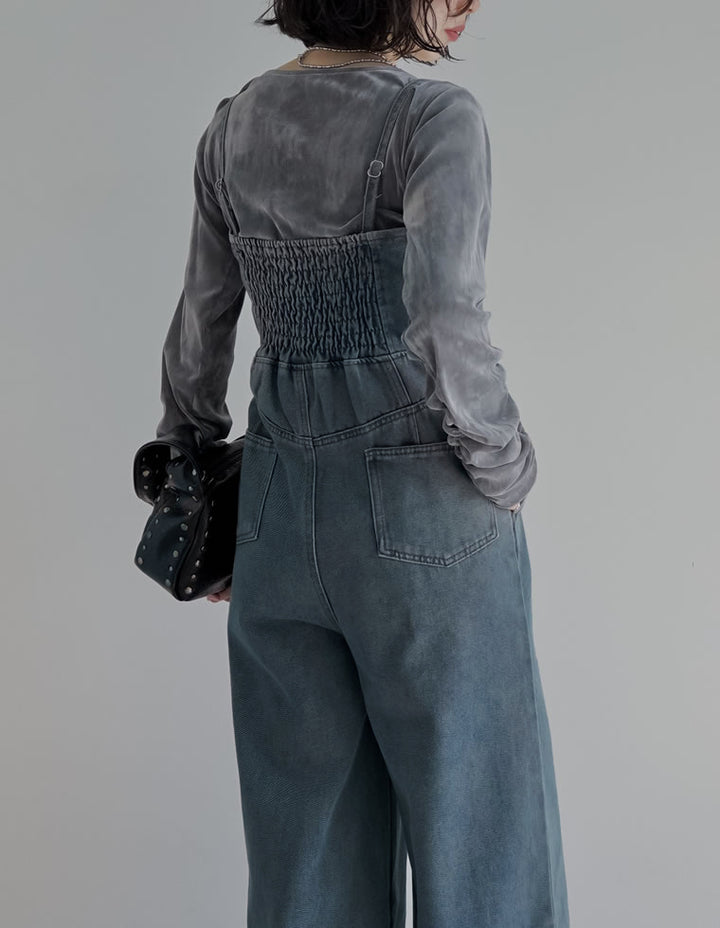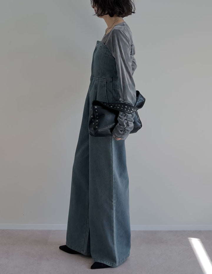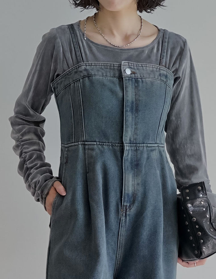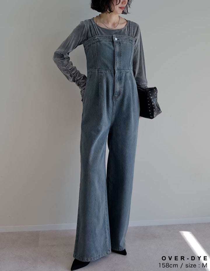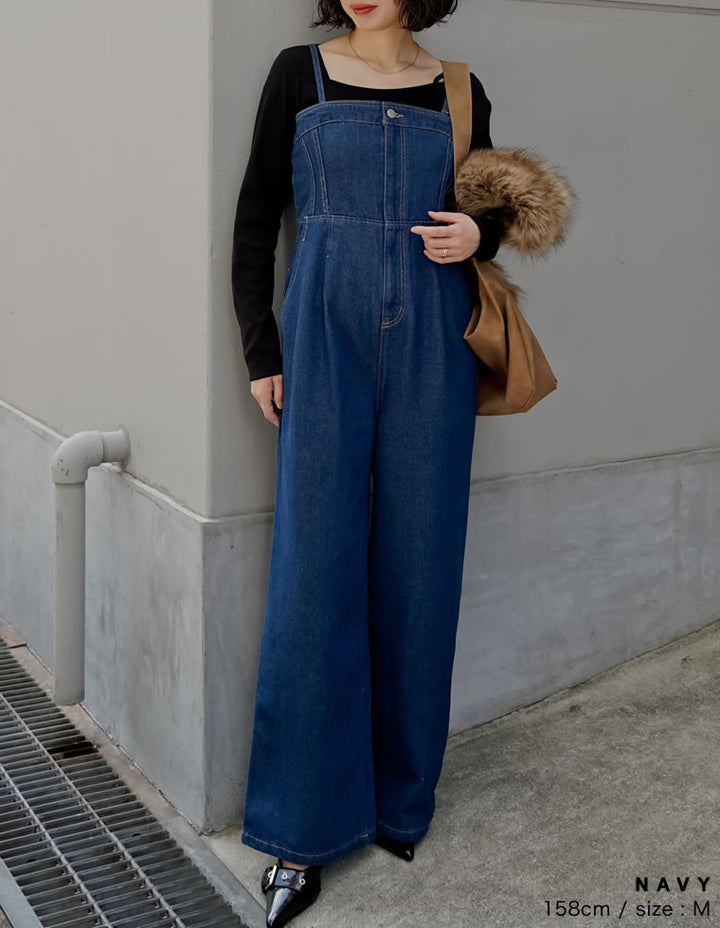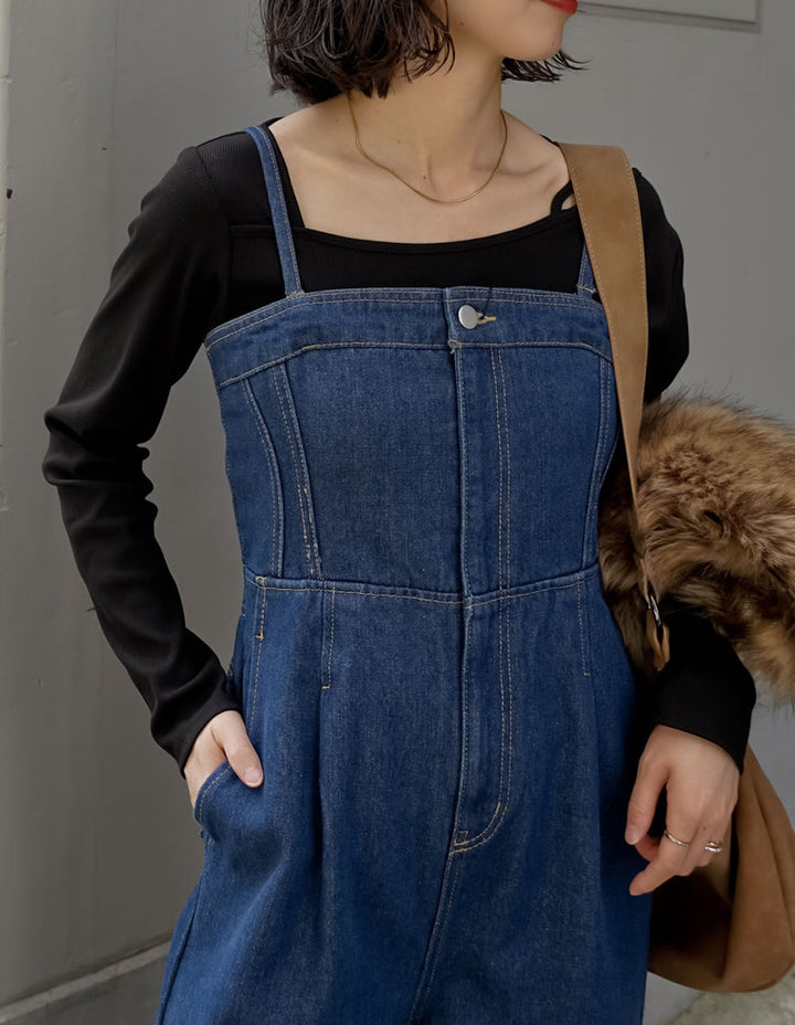 旬のレイヤードスタイルを楽しめるデニムオールインワンです。