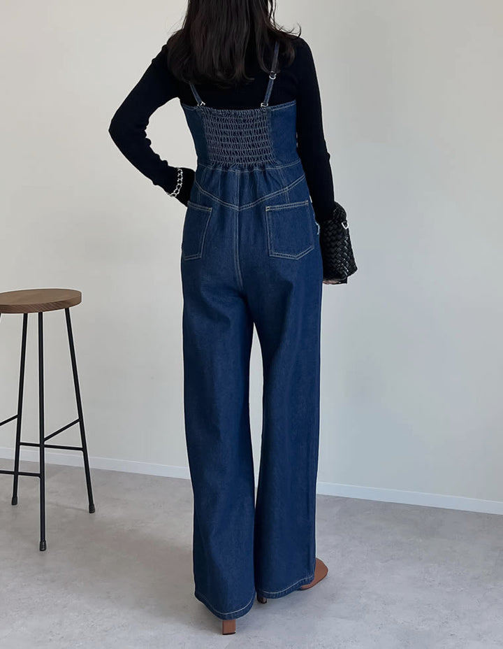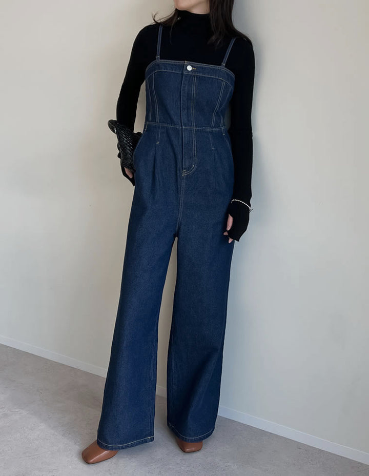 身体にフィットするような女性らしいシルエットを叶えてくれるデニムオールインワンです。