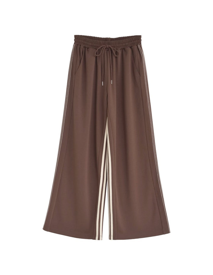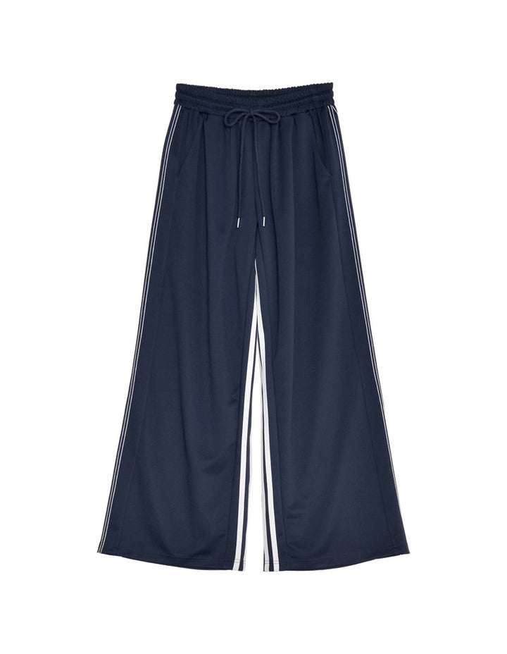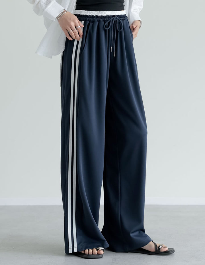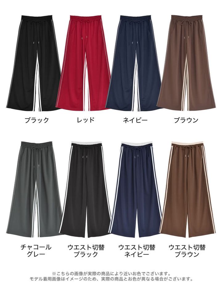 [夏でも涼しく体型カバー][低身長/高身長サイズ有]サイドラインルーズワイドパンツ