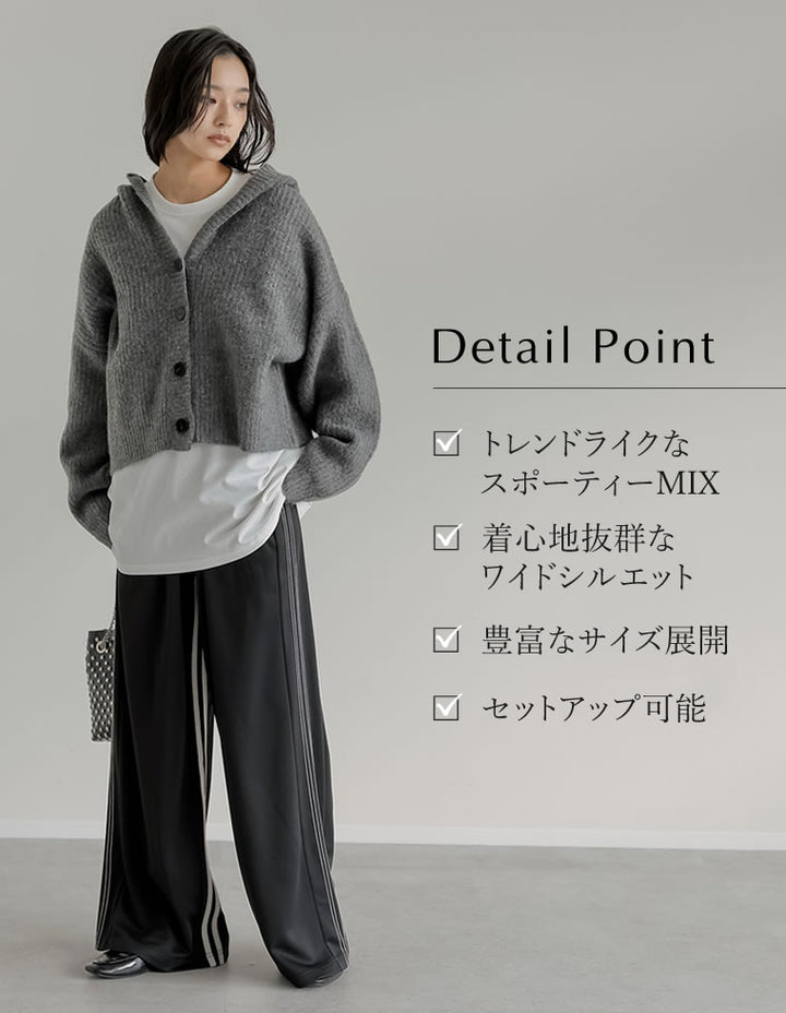 ぱっと目を引くカラーバリエーションと、大人が着こなせるスポーツミックスにこだわったトラックパンツ。