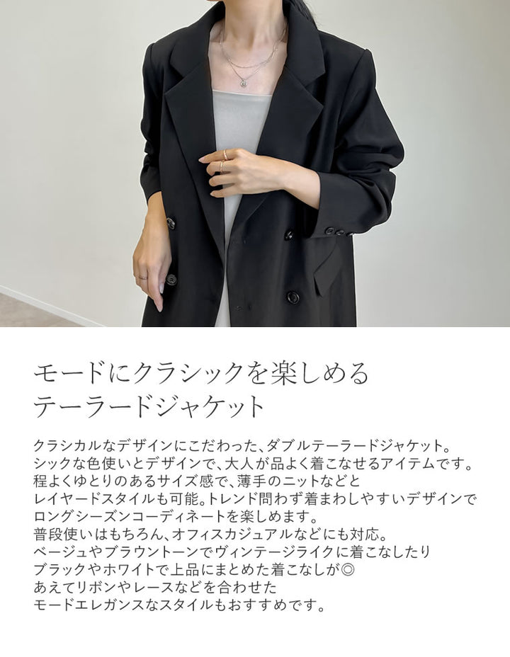 クラシカルなデザインにこだわった、ダブルテーラードジャケット。チェックと無地から選べる、豊富なカラー展開を用意しました。シックな色使いとデザインで、大人が品よく着こなせるアイテムです。程よくゆとりのあるサイズ感で、薄手のニットなどとレイヤードスタイルも可能。季節やトレンドを問わず着まわしやすいデザインで、ロングシーズンコーディネートを楽しめます。