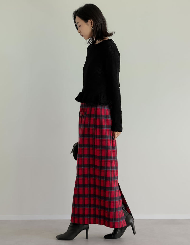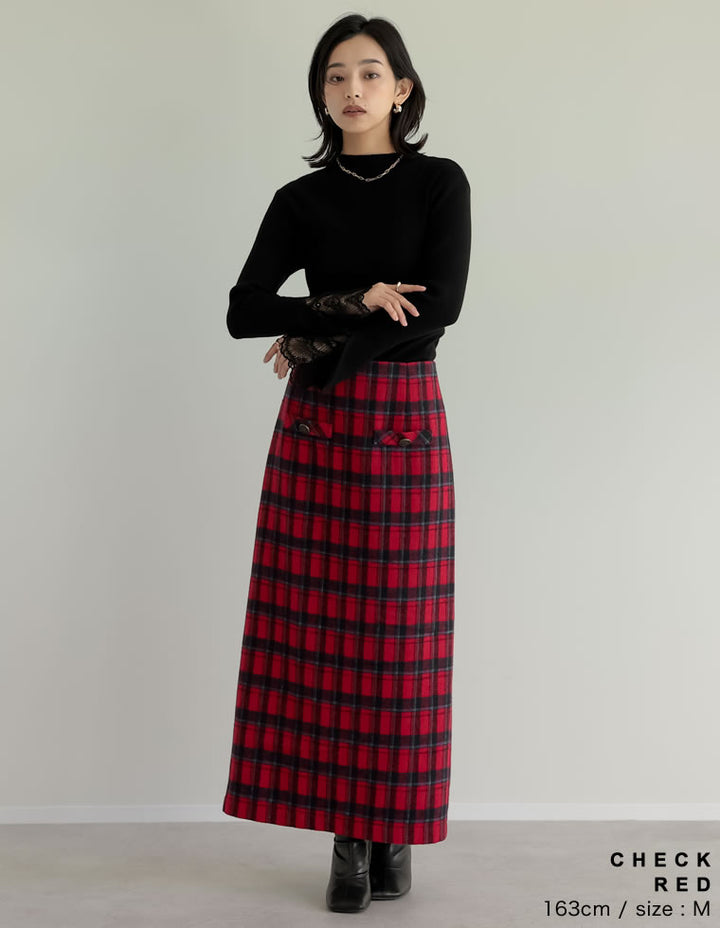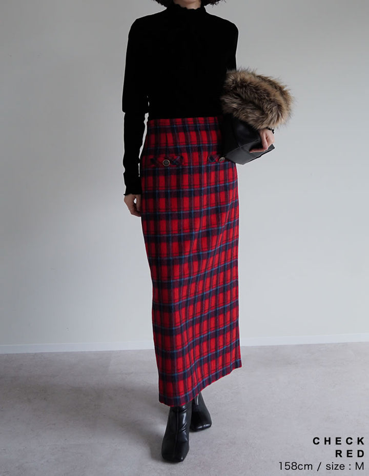 【TIME SALE 20%OFF】[低身長サイズ有]無地orチェック柄起毛ナロースカート