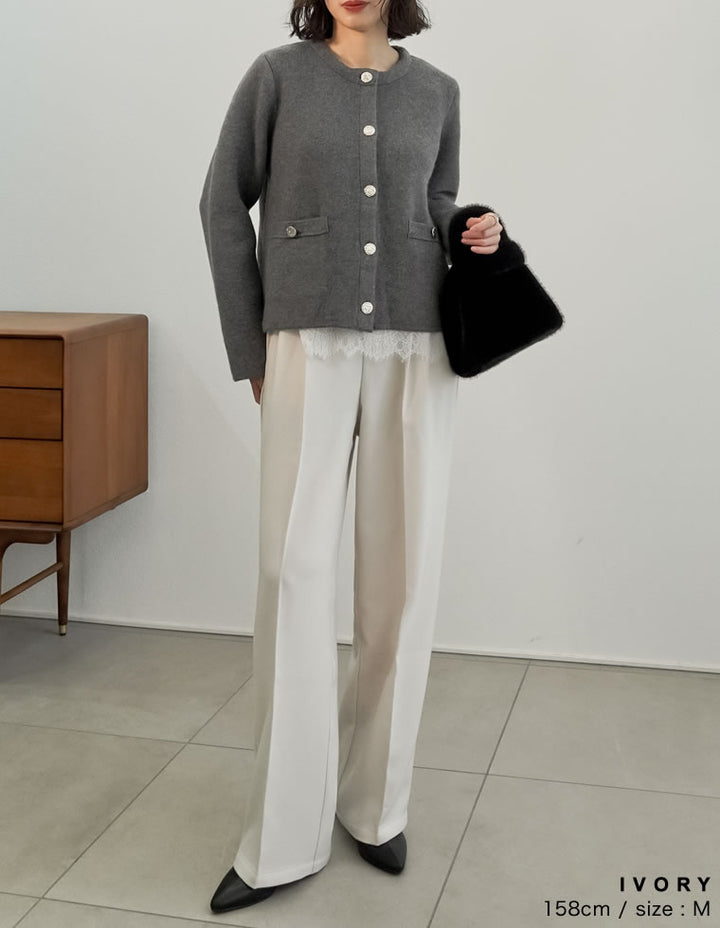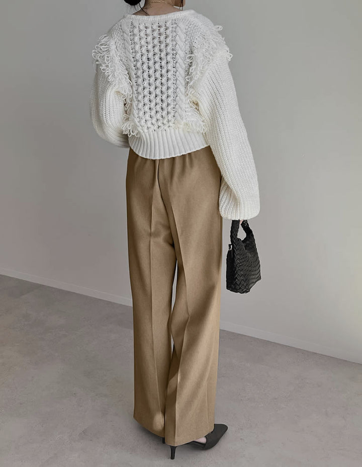 Tシャツ、コンパクトニット、スウェット、カーディガンなど、どんなトップスとも好相性。