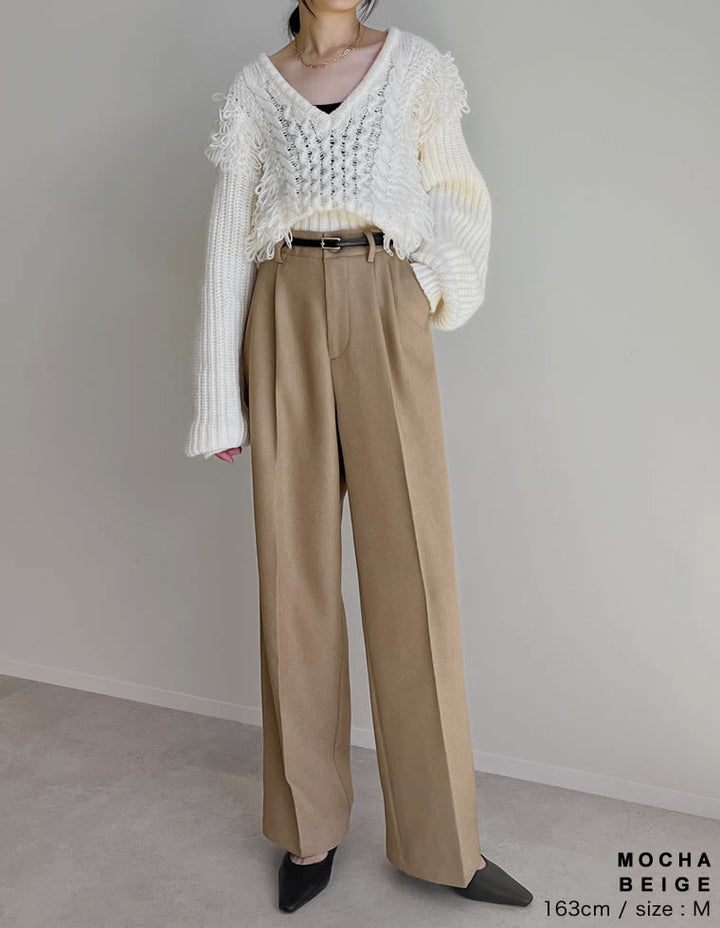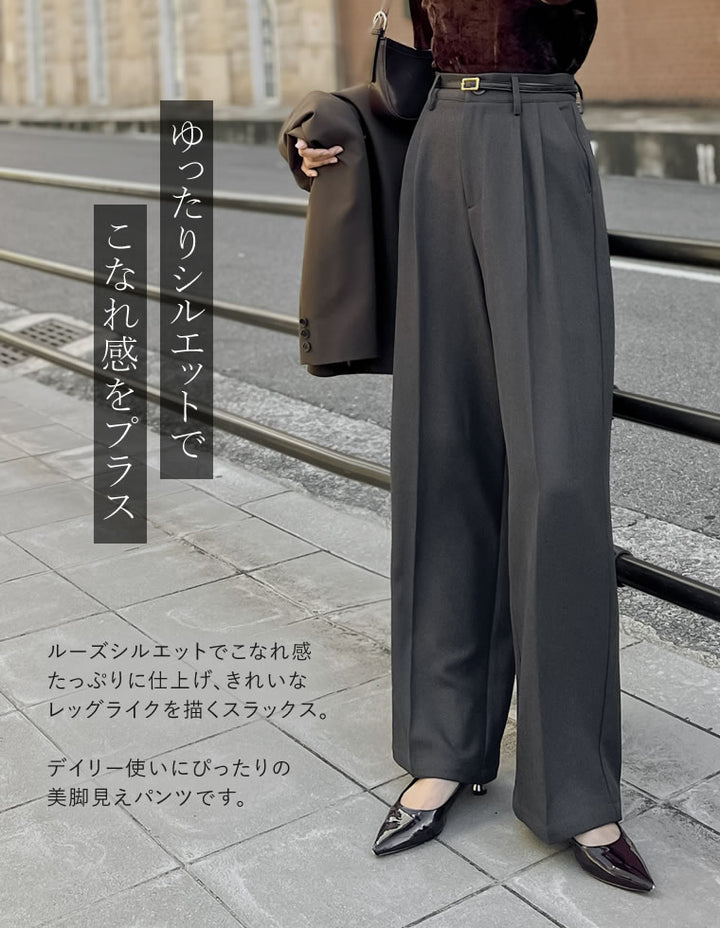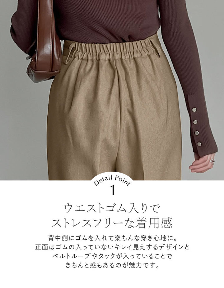 ベルトループやタックが入っていることできちんと感もあるのが魅力です。