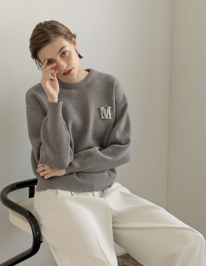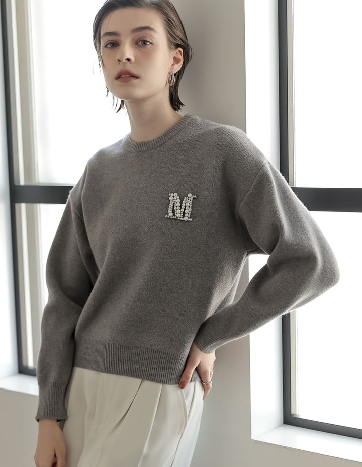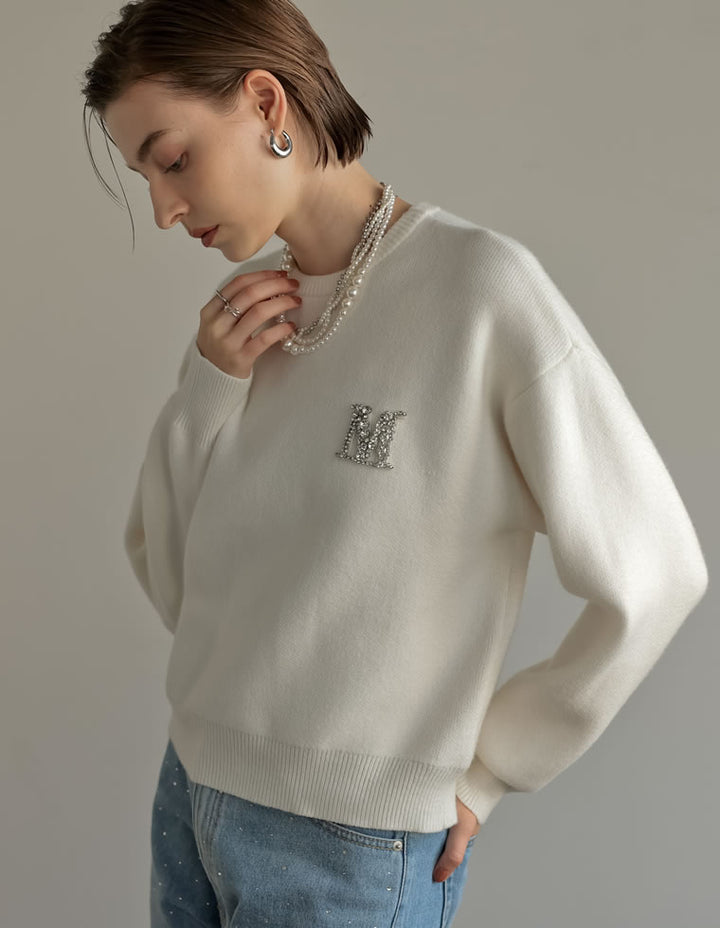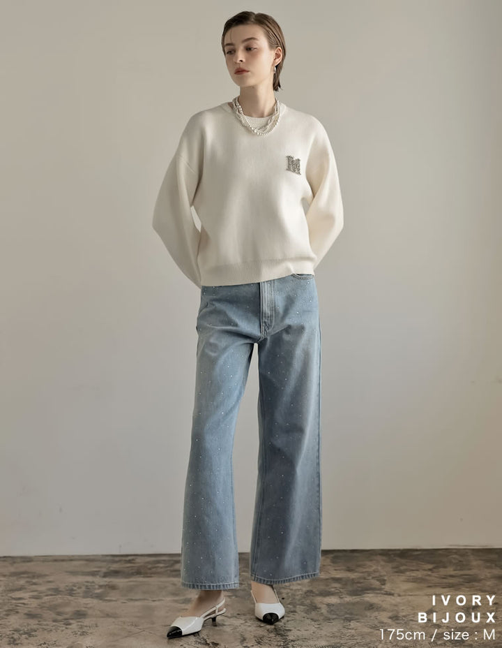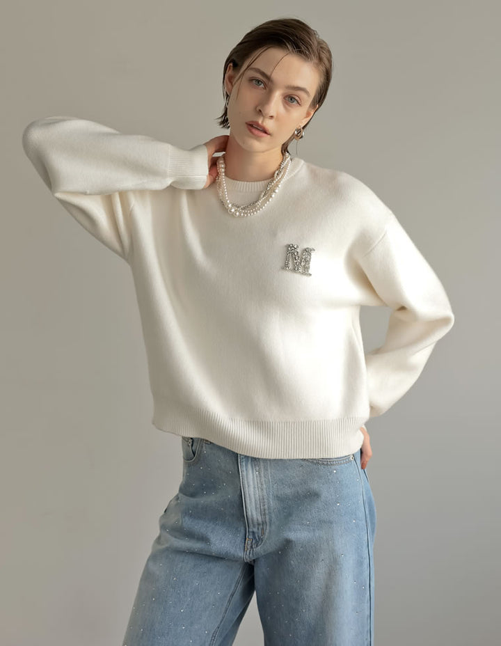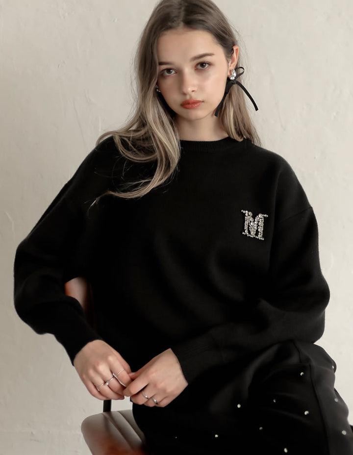 [MEISM by Re:EDIT][2025AW PRE ORDER]Mビジューエンブレムニットトップス