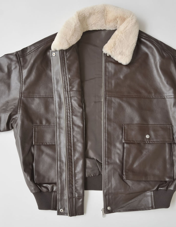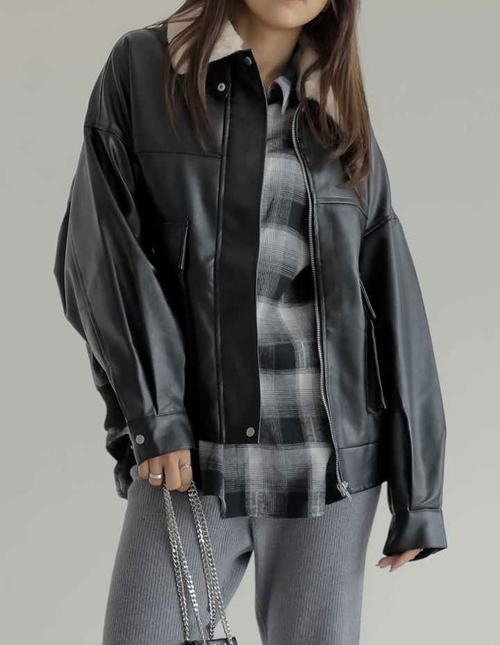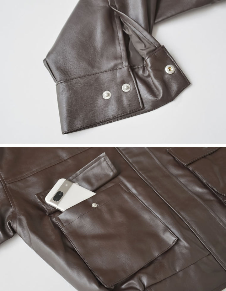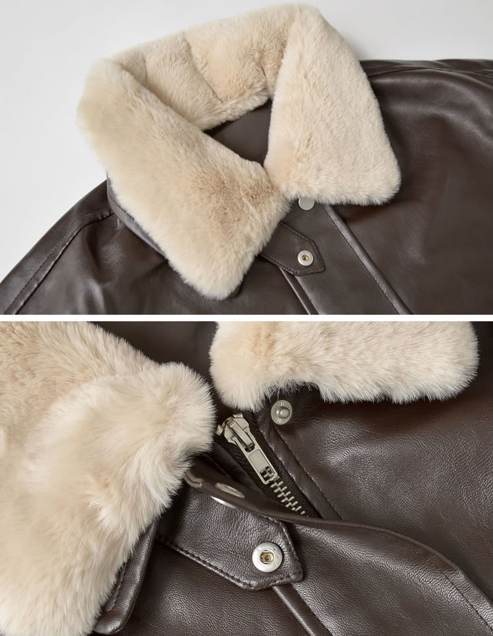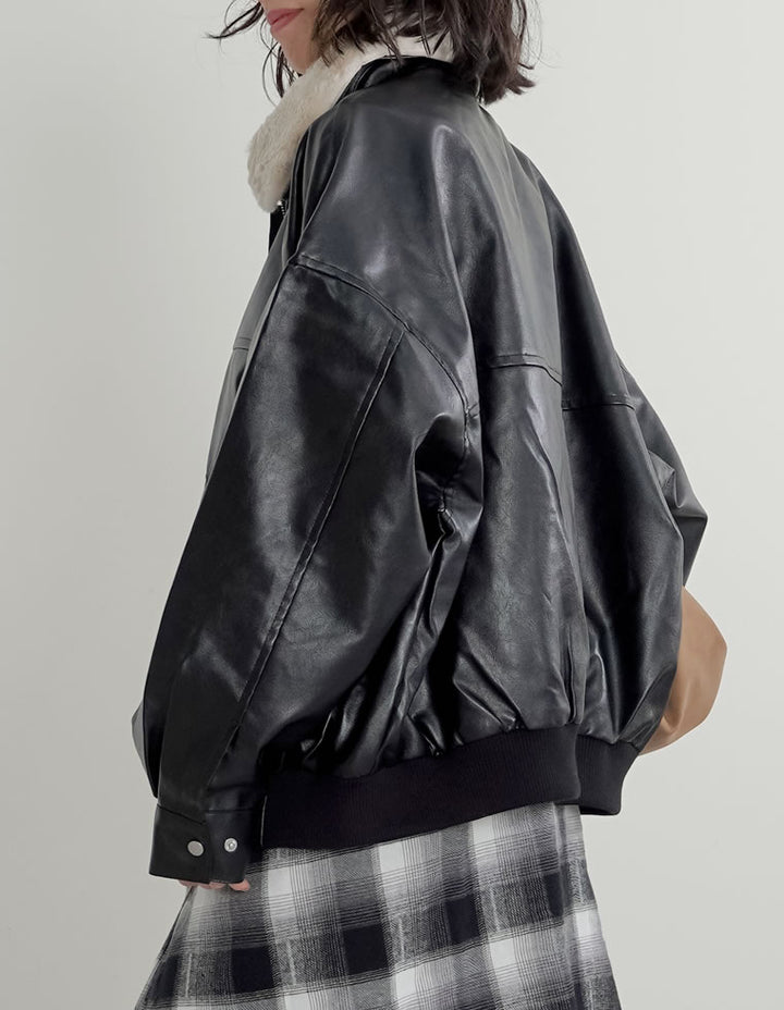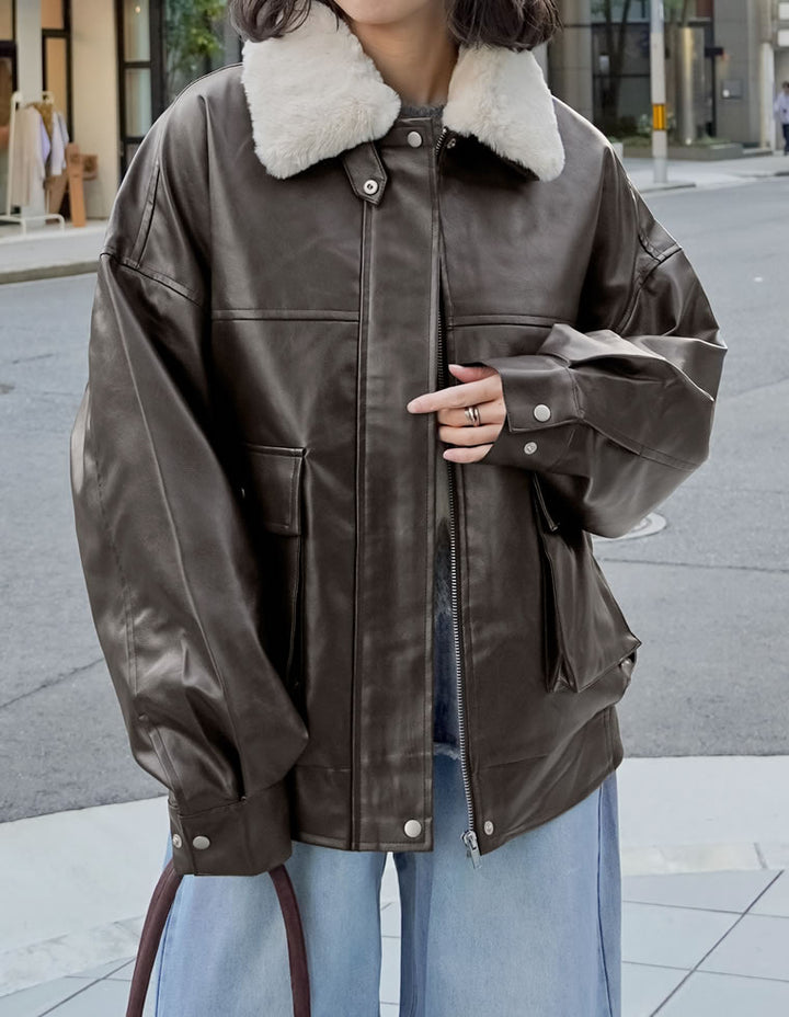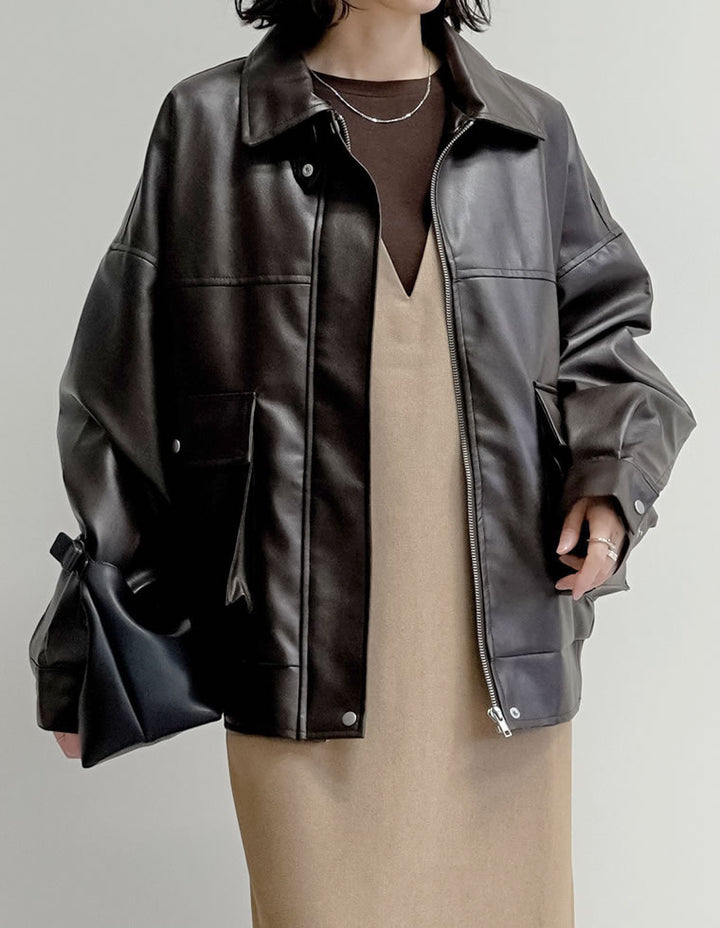 リアルな質感のフェイクレザーを使用した、ヴィンテージライクジャケットです。柔らかなフェイクレザーがごわつきを軽減し、秋冬のレイヤードにも取り入れやすい軽やかな着心地。取り外し可能なファーティペット付きで、2WAYの着こなしが楽しめるのも魅力。襟を立ててベルトを留めれば、モードな雰囲気が際立つ表情に。ティペットなしで着用すれば、ミニマルでこなれた印象に仕上がります。風を通しにくく、見た目以上に防寒対策もできる、モードカジュアルな着こなしにぴったりのジャケットです。