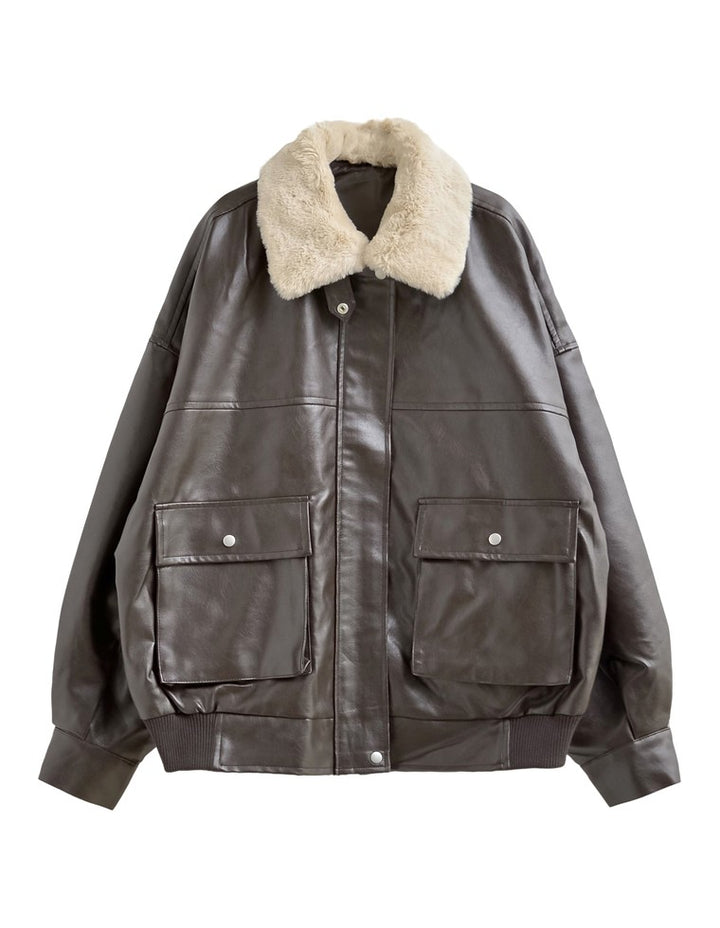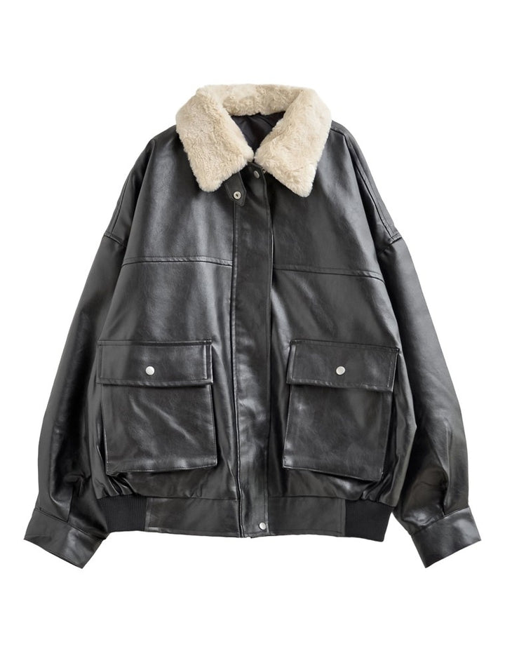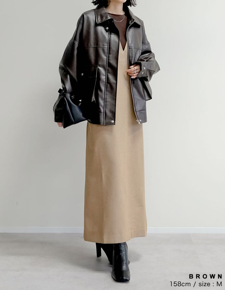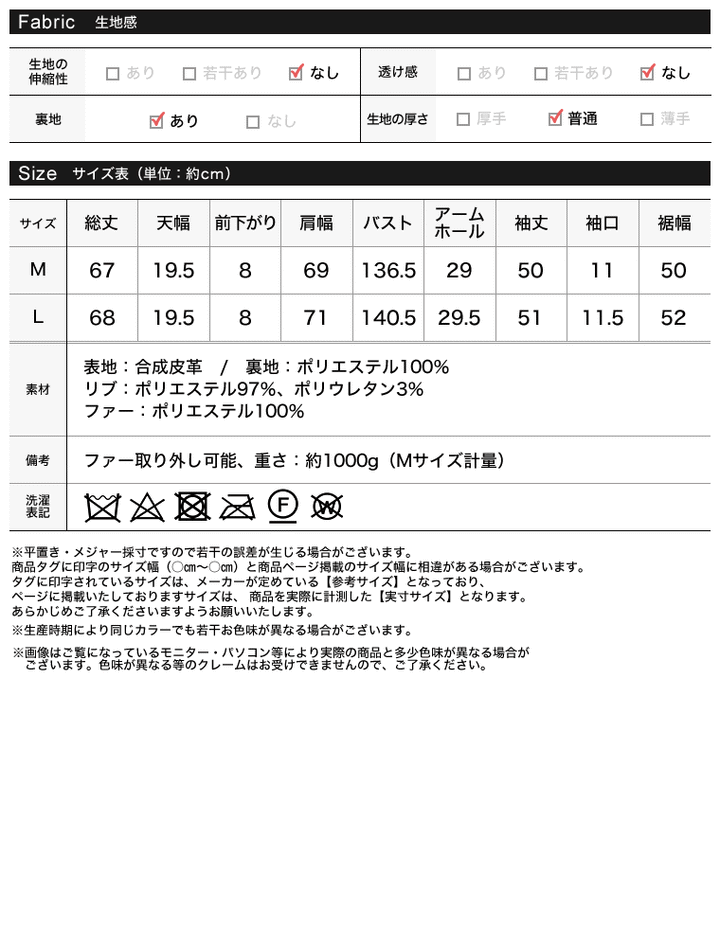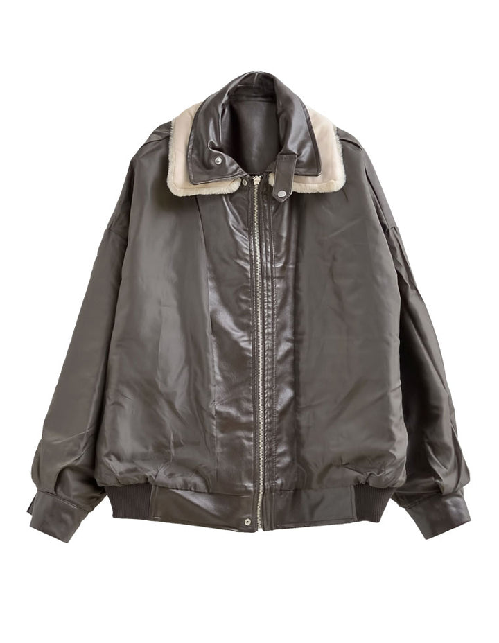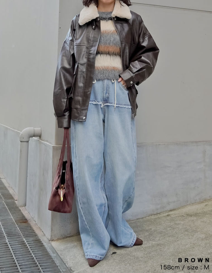 リアルな質感のフェイクレザーを使用した、ヴィンテージライクジャケットです。柔らかなフェイクレザーがごわつきを軽減し、秋冬のレイヤードにも取り入れやすい軽やかな着心地。取り外し可能なファーティペット付きで、2WAYの着こなしが楽しめるのも魅力。襟を立ててベルトを留めれば、モードな雰囲気が際立つ表情に。ティペットなしで着用すれば、ミニマルでこなれた印象に仕上がります。風を通しにくく、見た目以上に防寒対策もできる、モードカジュアルな着こなしにぴったりのジャケットです。