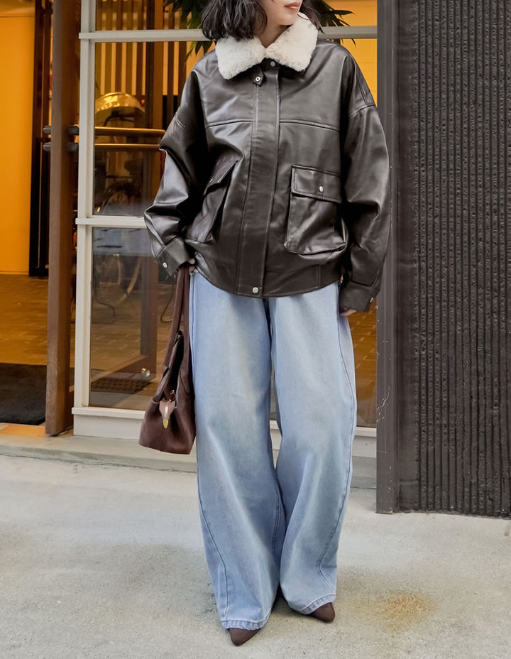 デニムやリラックスパンツ、フレアパンツなどと好相性。