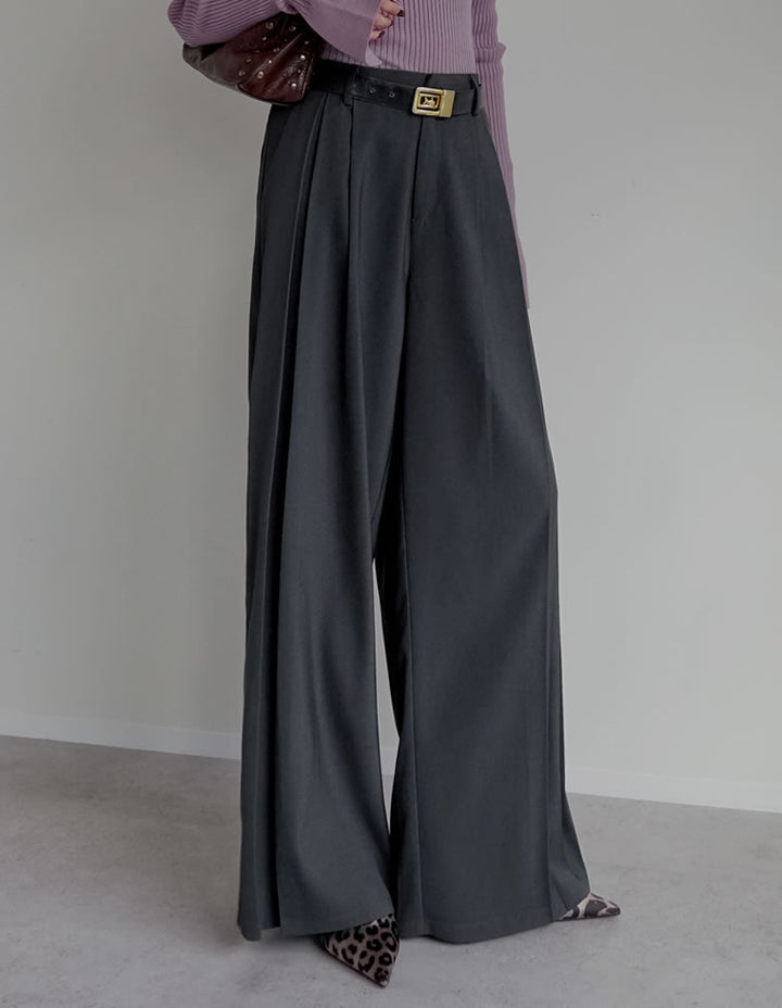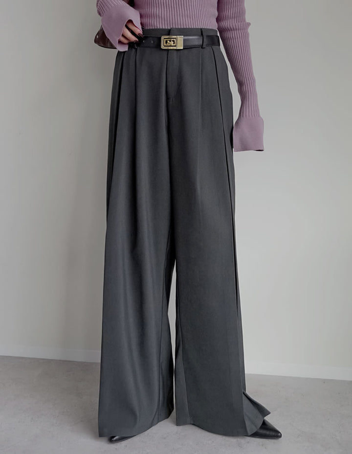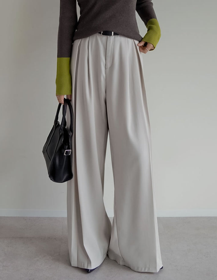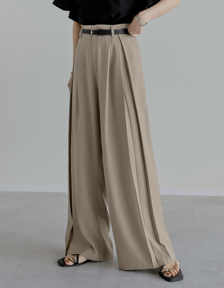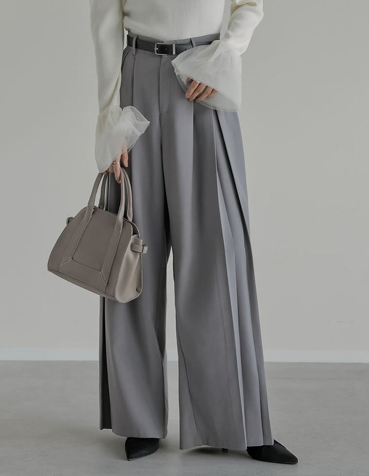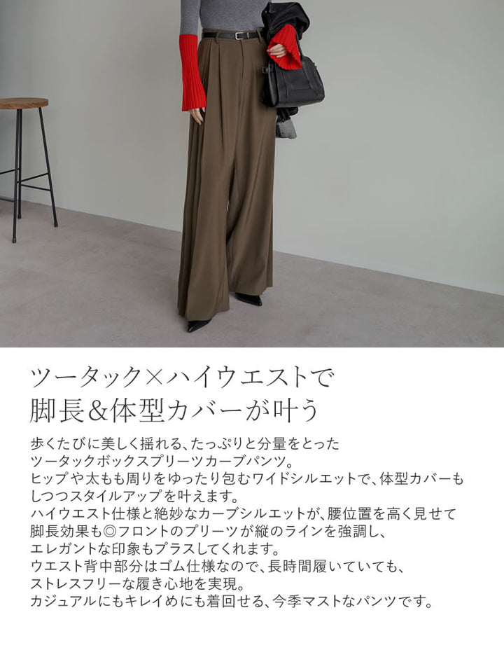 歩くたびに美しく揺れる、ツータックボックスプリーツパンツ。