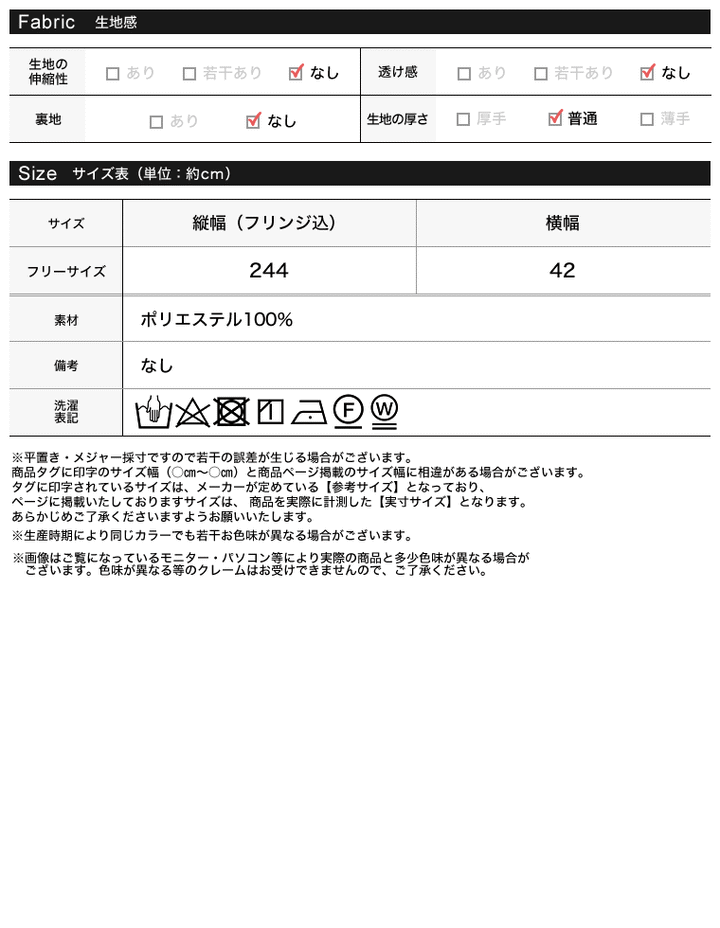 | サイズ | 縦幅(フリンジ込) | 横幅 |